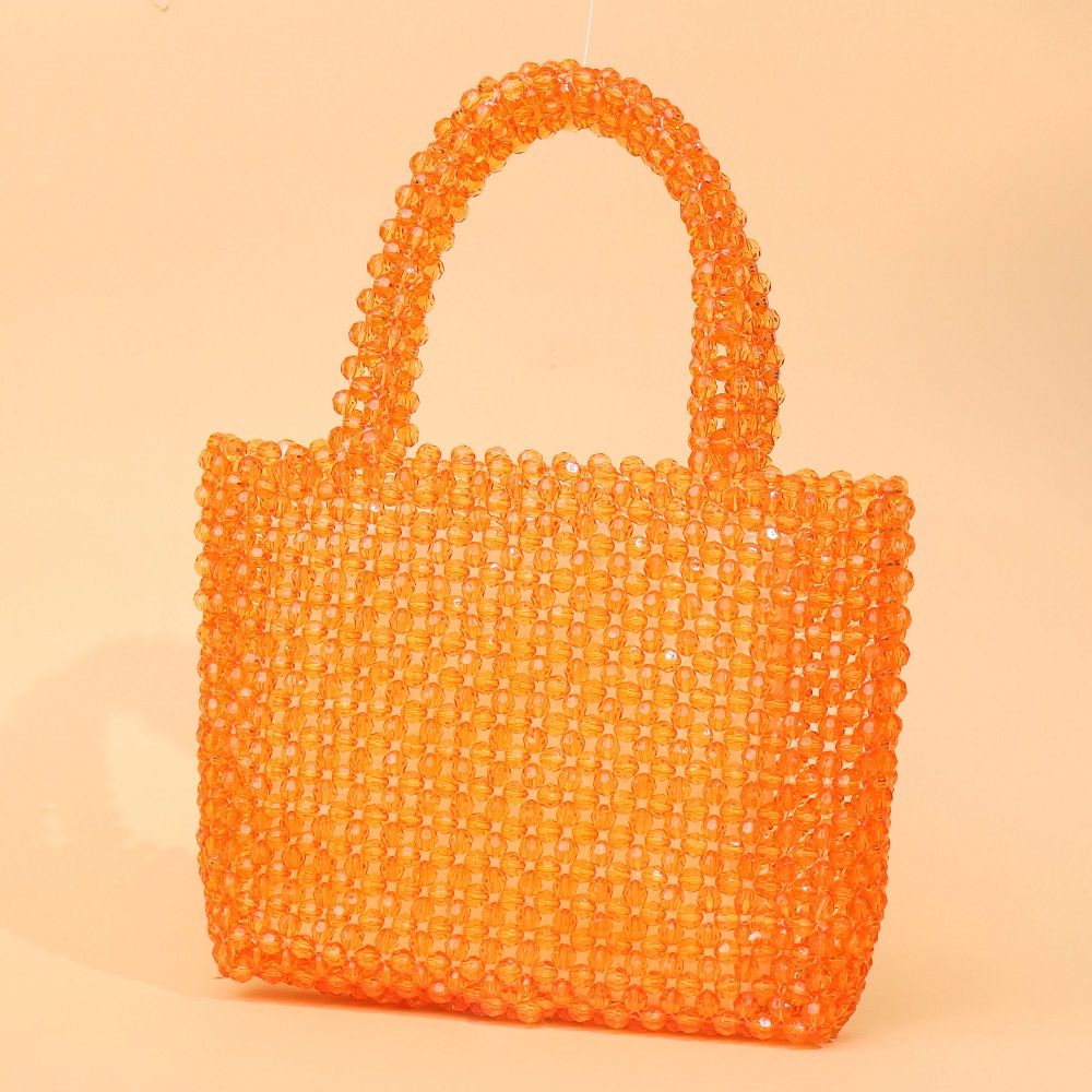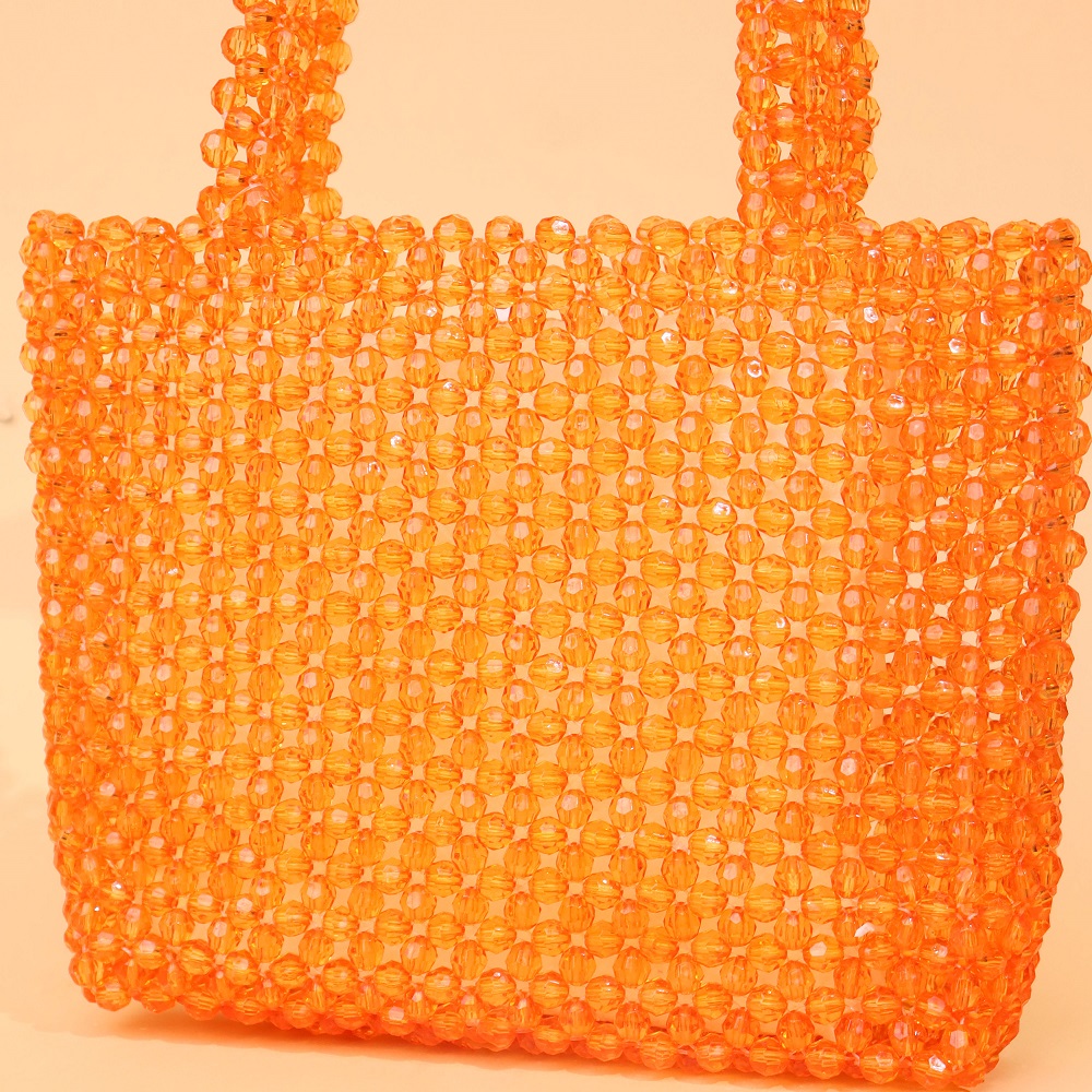 Brighten up your look with this handmade orange beaded tote bag, crafted entirely from premium transparent beads for a bold and playful vibe. Its eye-catching design makes it a standout accessory, perfect for parties, brunches, or casual outings. The sturdy beaded handles ensure comfort, while the structured build gives it a chic and modern silhouette. A blend of vintage charm and contemporary style, this bag is not just an accessory but a statement piece that complements both casual and dressy outfits. Lightweight yet durable, it’s ideal for carrying your everyday essentials in style.