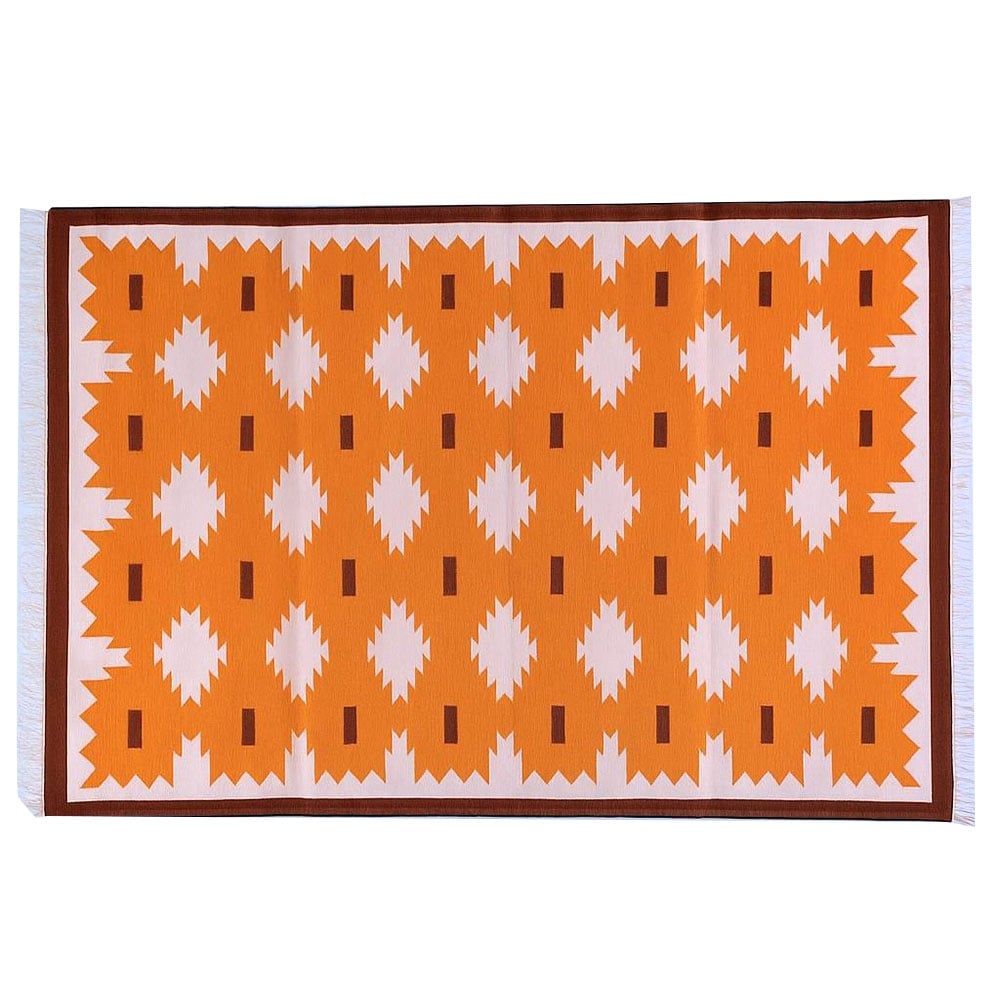 Discover the orange allure of this cotton dhurrie, handwoven with boho, minimalist inspiration. This piece gracefully complements modern and traditional settings, making it appealing to gifters, decorators and collectors. Each creation carries the warmth of skilled artisans, reflecting dedication and rich cultural heritage. Packed and quality checked by Indianshelf.