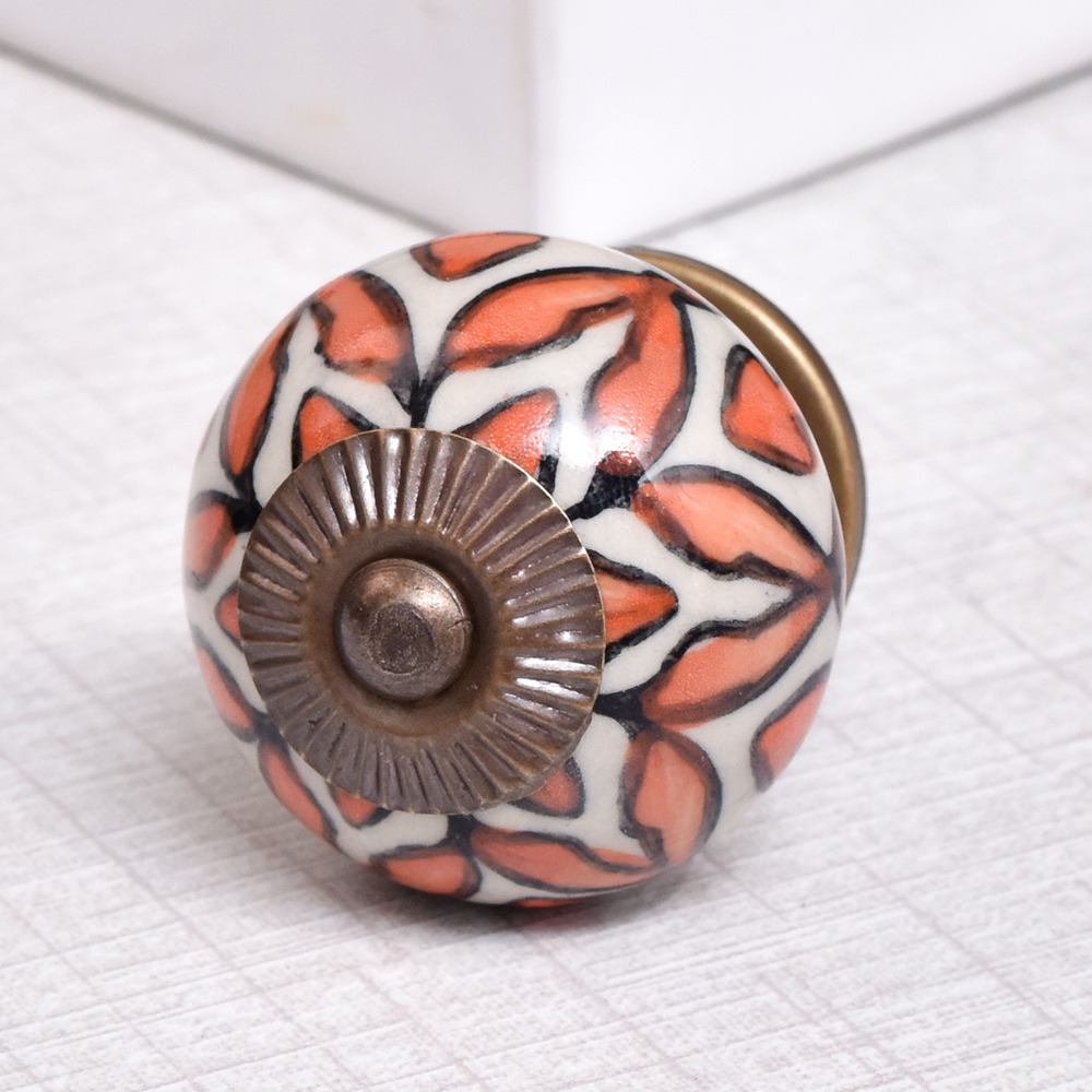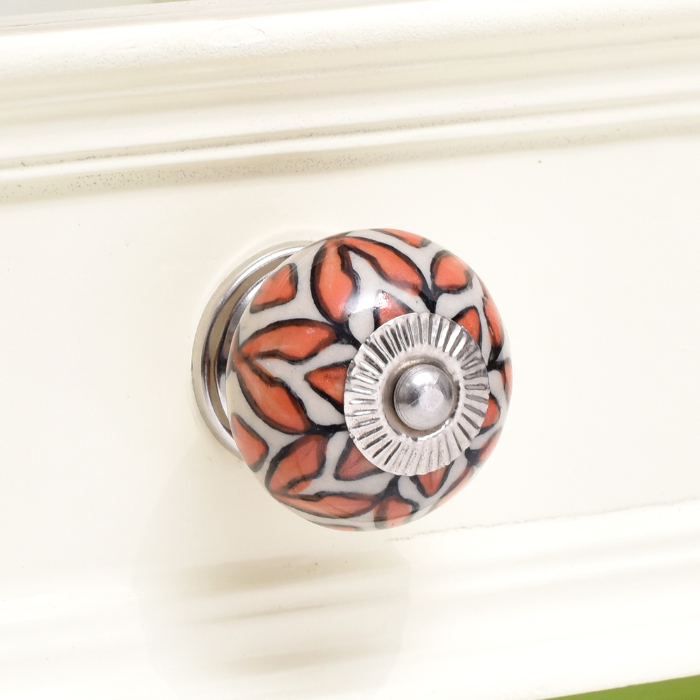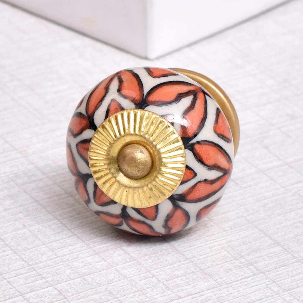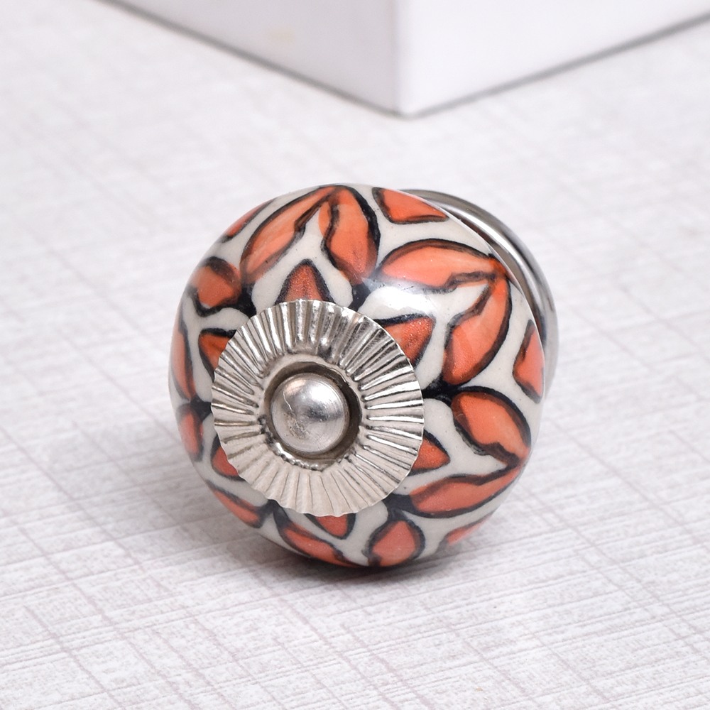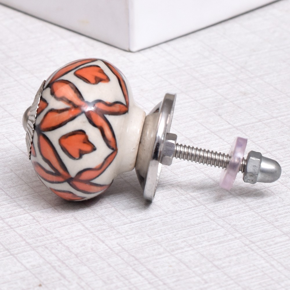 Handmade Orange Floral Ceramic Knob