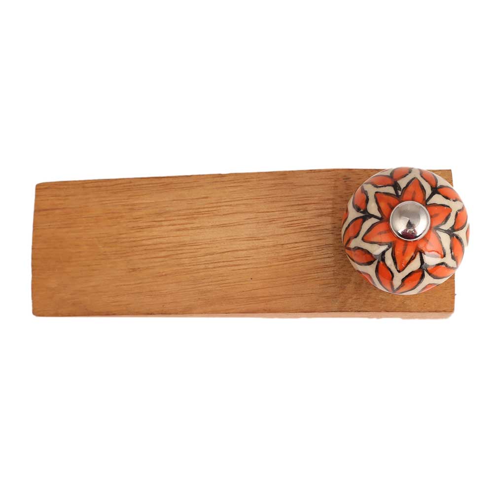Indianshelf.com for bulk/wholesale orders.Indianshelf.us for personal purchases.Add a burst of color and charm to your home with the Handmade Orange Floral Ceramic Wooden Door Stopper. Featuring a stunning orange floral pattern on high-quality ceramic, this door stopper effortlessly combines beauty with functionality. Handmade with care, it’s the perfect way to keep your doors open while enhancing your interior décor.