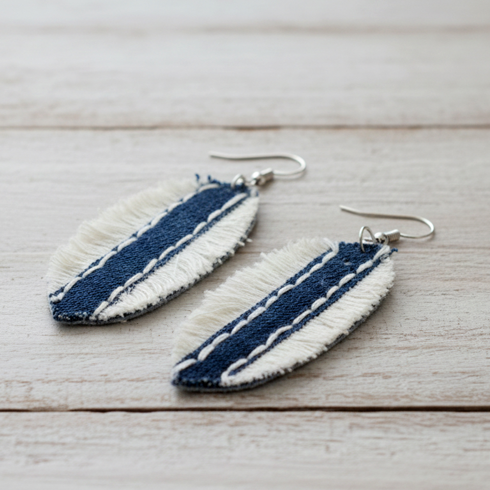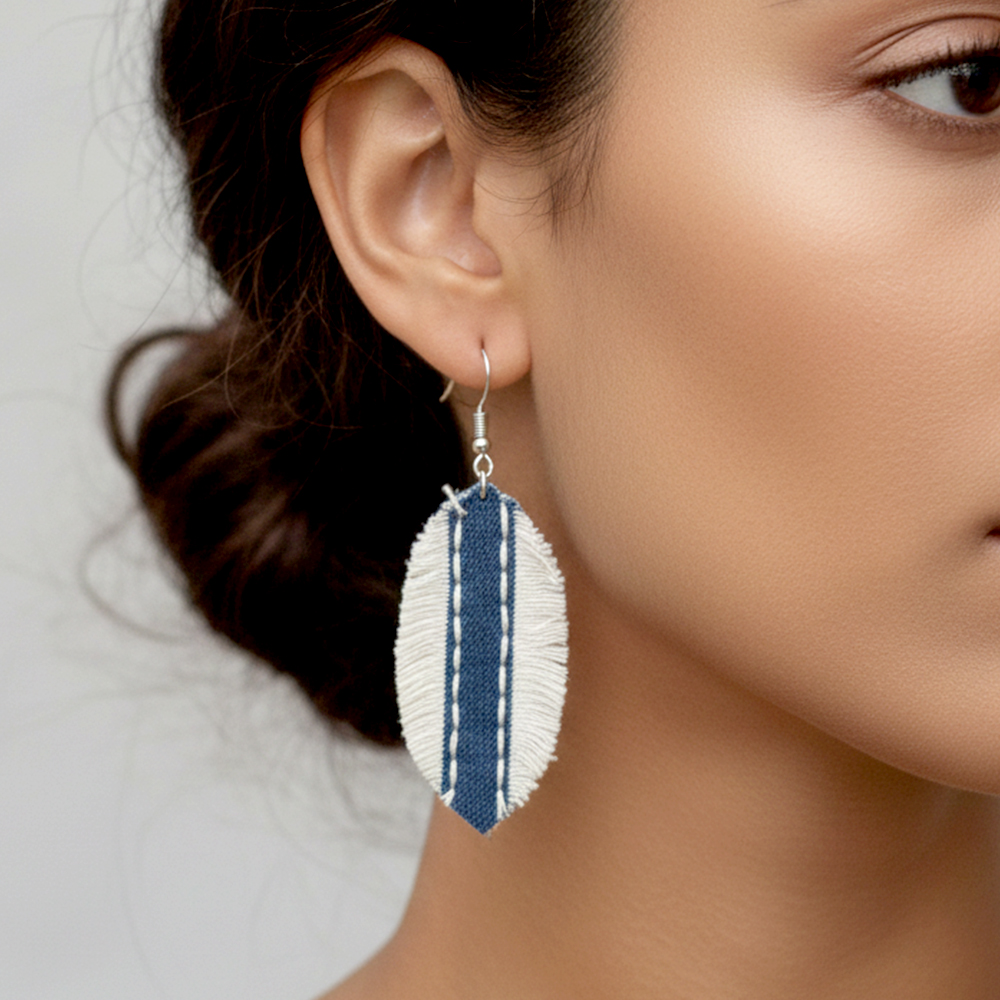 Handmade Oval Denim Lightweight Drop Earrings