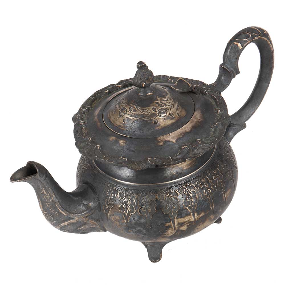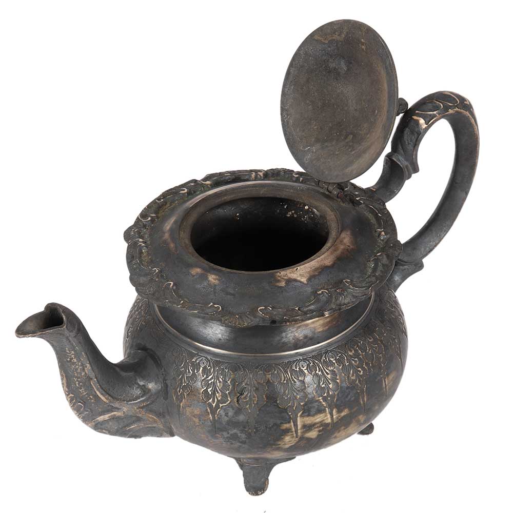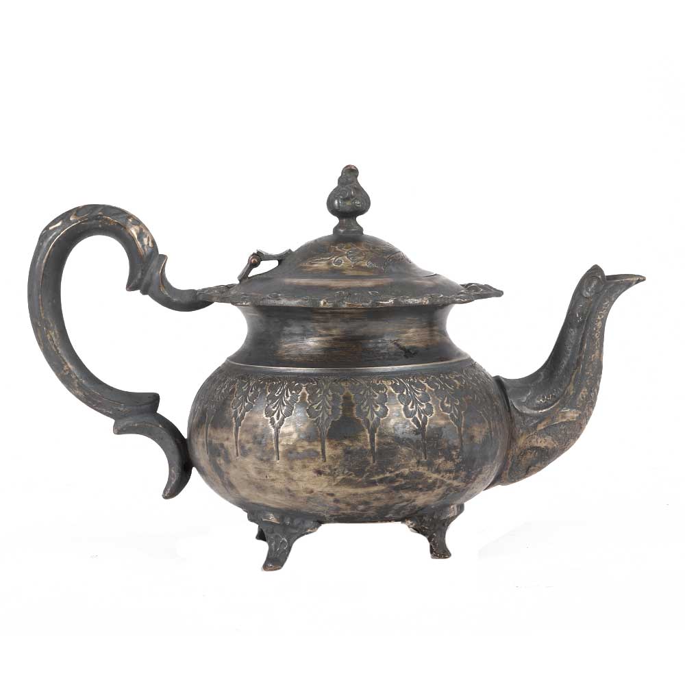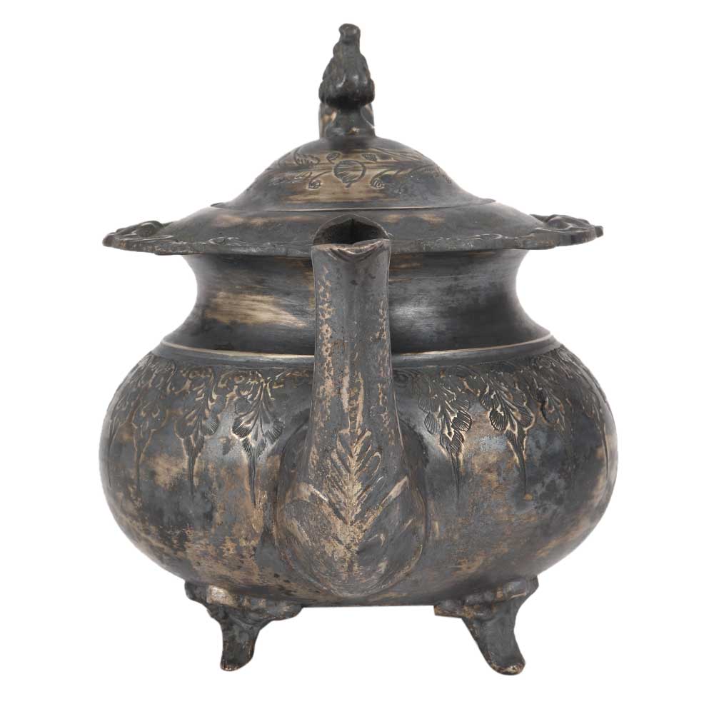 • Handmade Oxidized Carved Silver Brass Tea Pot In Moroccan Style