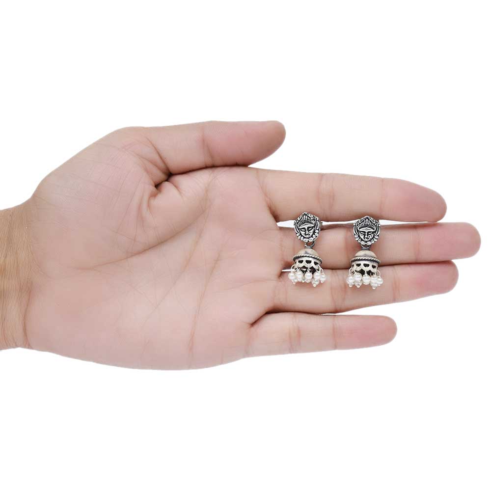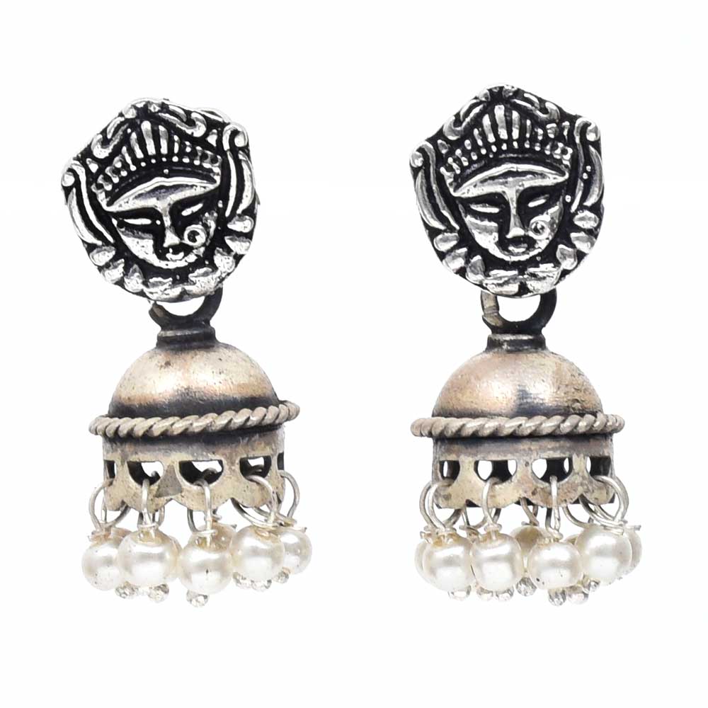 Handmade Oxidized Silver Goddess Face Bell Shape With Pearl Hangings