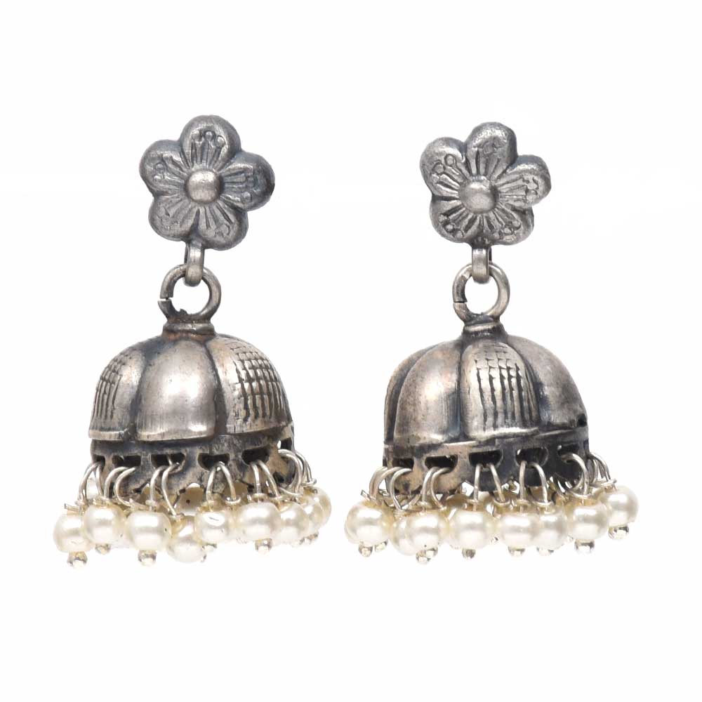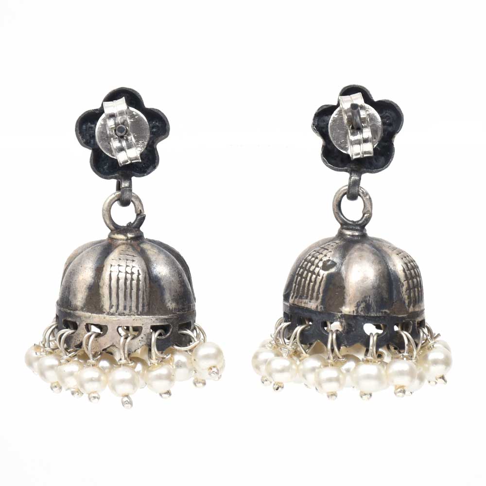 • Handmade Oxidized Silver Jhumki Jhumka Earring With Pearl Beads