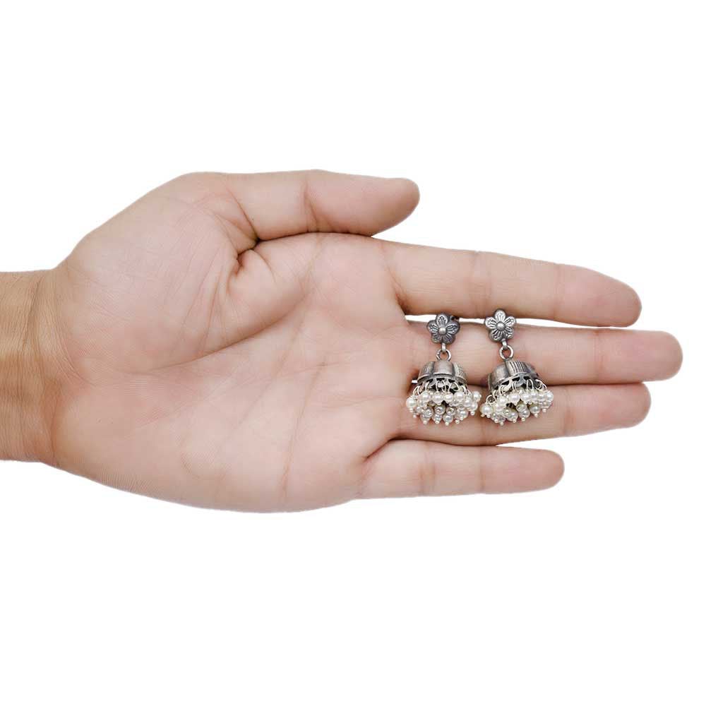 Handmade Oxidized Silver Jhumki Jhumka Earring With Pearl Beads
