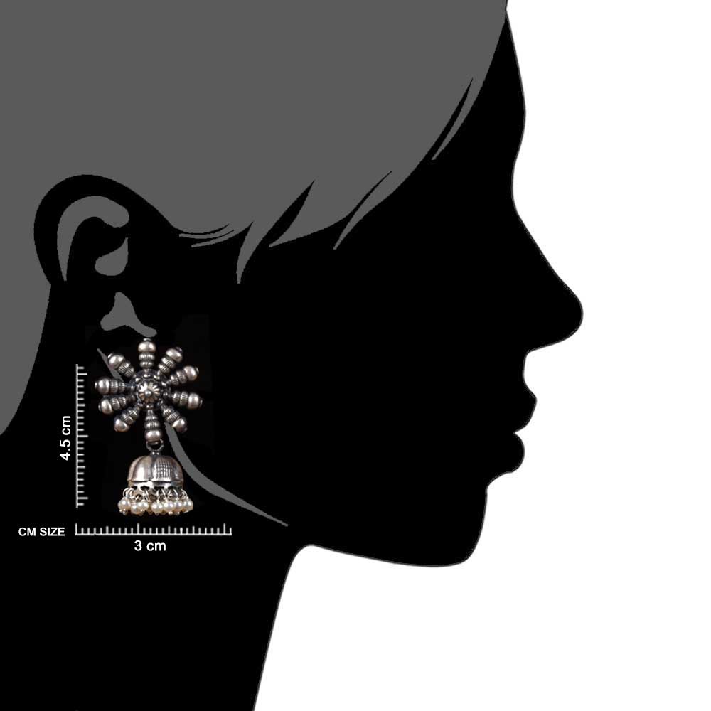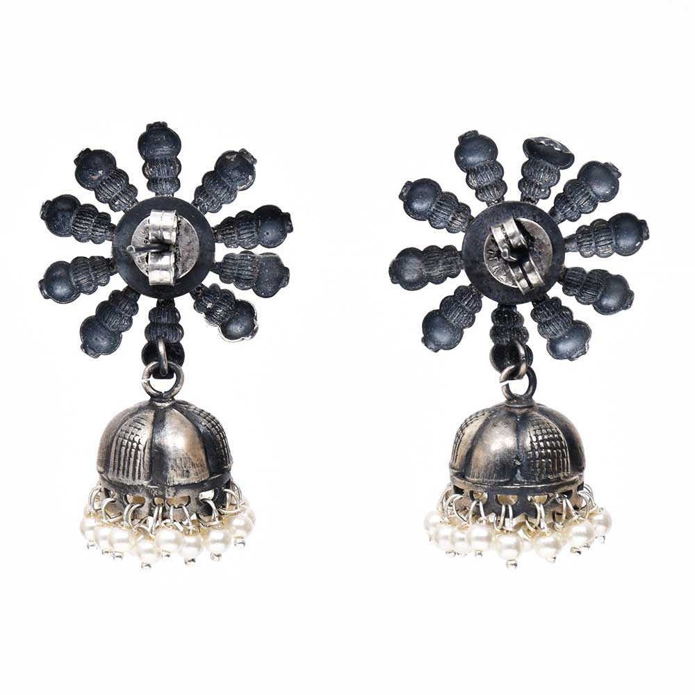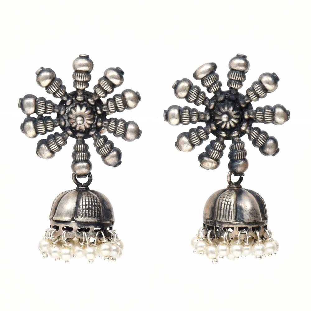 • Handmade Oxidized Silver Jhumki Jhumka Earrings For Women With Sun Shape Stud
