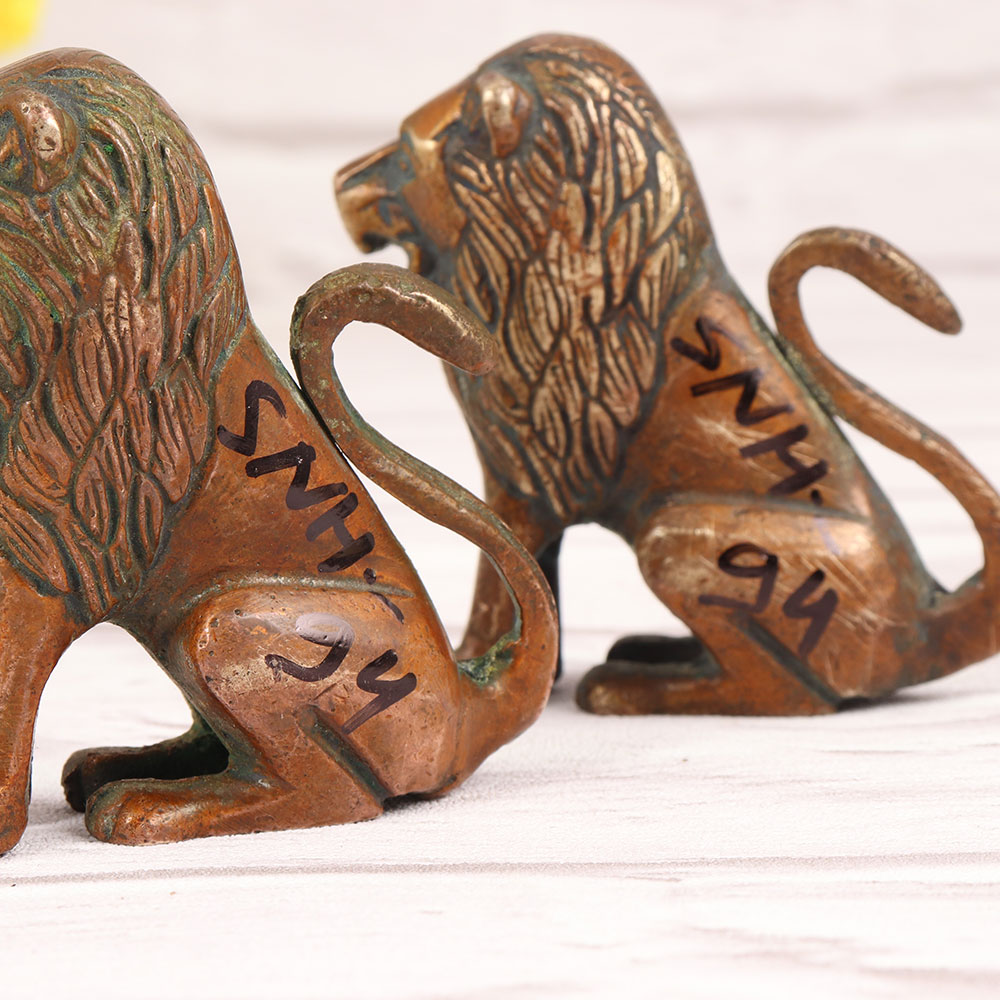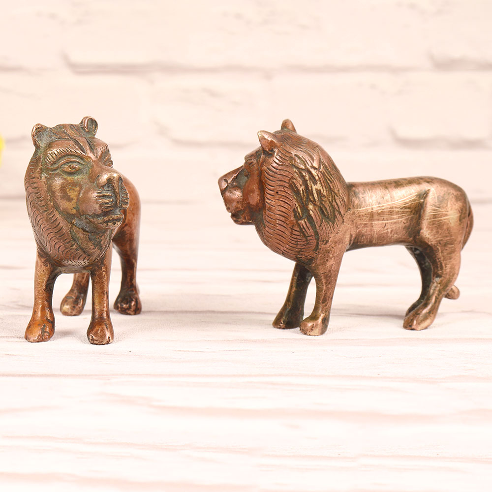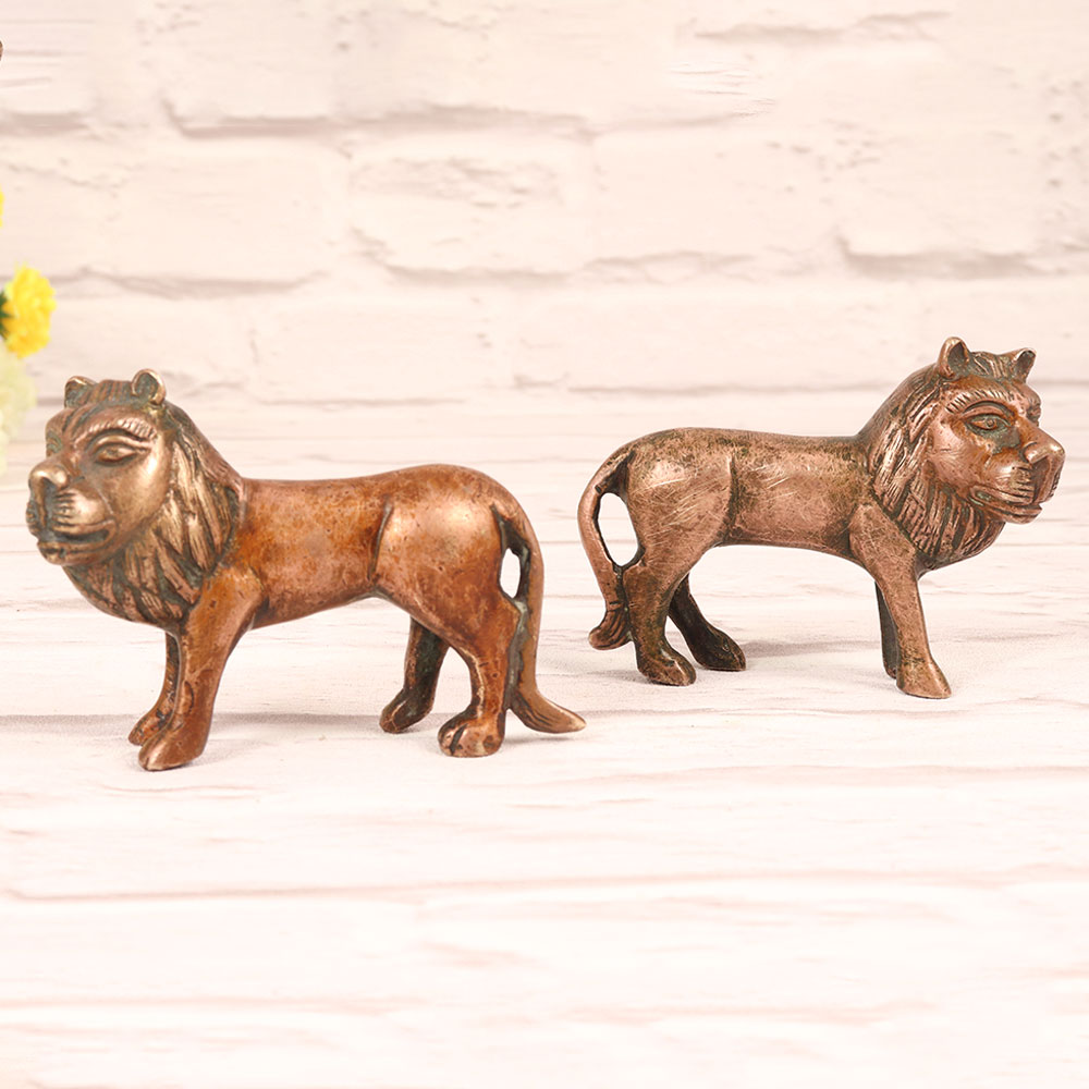 Buy a Brass Lion Statue Pair in a captivating Brass finish and get a hassle free delivery right at your doorstep. Standing proudly, these majestic creatures exude a timeless elegance, their intricate details and lifelike expressions a testament to the exceptional craftsmanship of highly skilled and experienced Indian artisans. Meticulously handcrafted from high-quality brass, each statue boasts a rich antique brown finish, lending an air of sophistication and warmth to any environment. Ideal for home, office, restaurant, hotel, or cafe decor, these statues serve as a captivating focal point, symbolizing strength, courage, and majesty. The statues are versatile, seamlessly blending with various design aesthetics, from classic to contemporary. Add a touch of Indian artistry to your surroundings and create a space that resonates with cultural richness. Moreover, these statues make for an extraordinary gift, expressing thoughtfulness and admiration. Whether it's a special celebration, a festive occasion, or an auspicious moment, present this handmade masterpiece to your loved ones, and let the symbolic significance of the lion inspire and protect them in their journey through life.