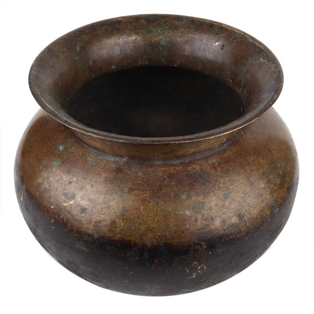 Handmade Patina Rich Round Brass Pot Or Lota