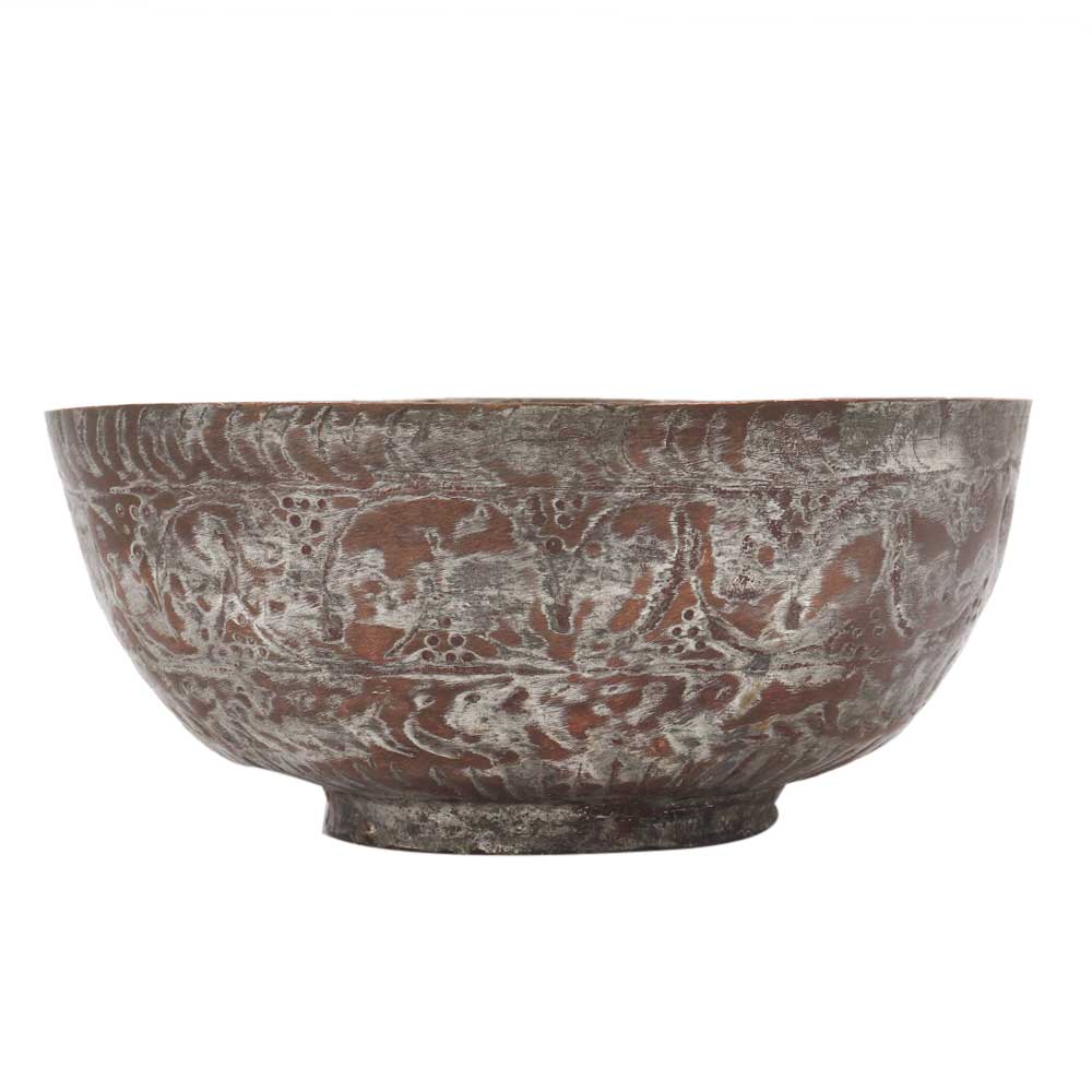 • Handmade Patinated Brass Engraved  Footed Bowl