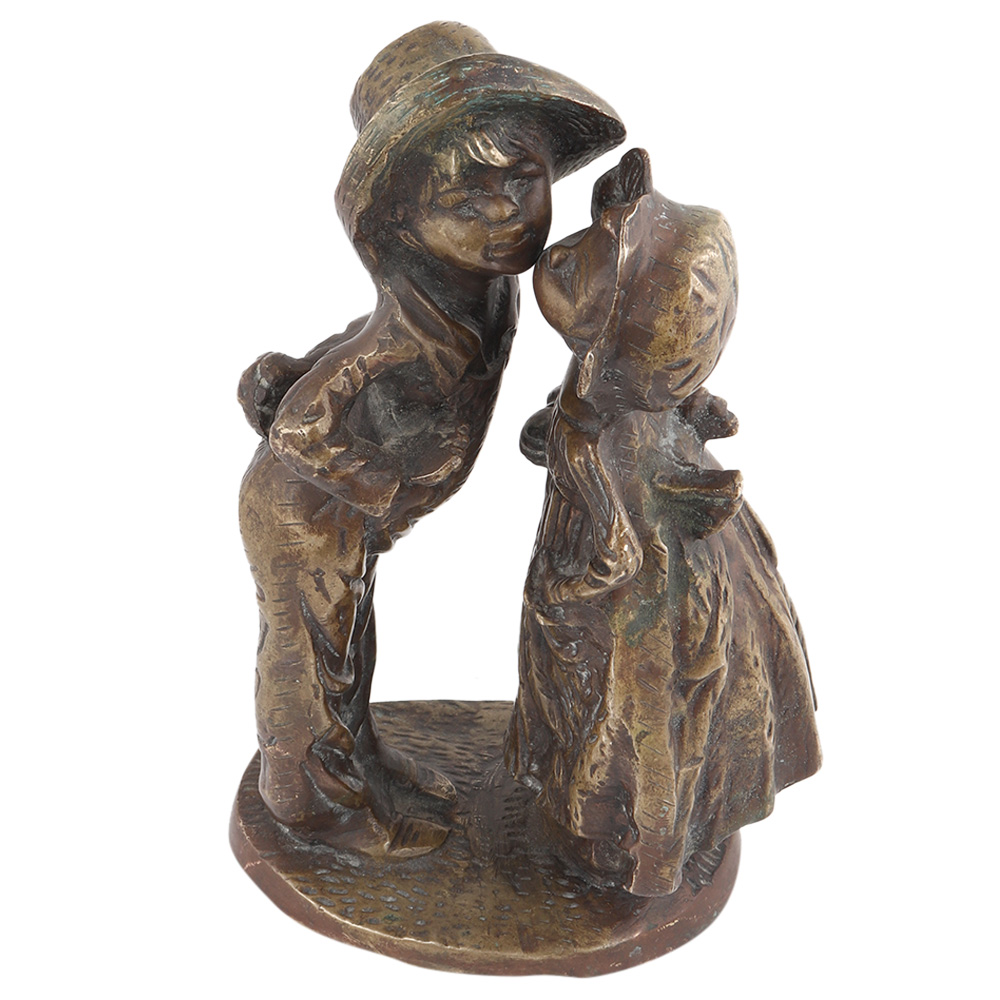 Handmade Patinated Gold Brass Girl Kissing Boy Statue