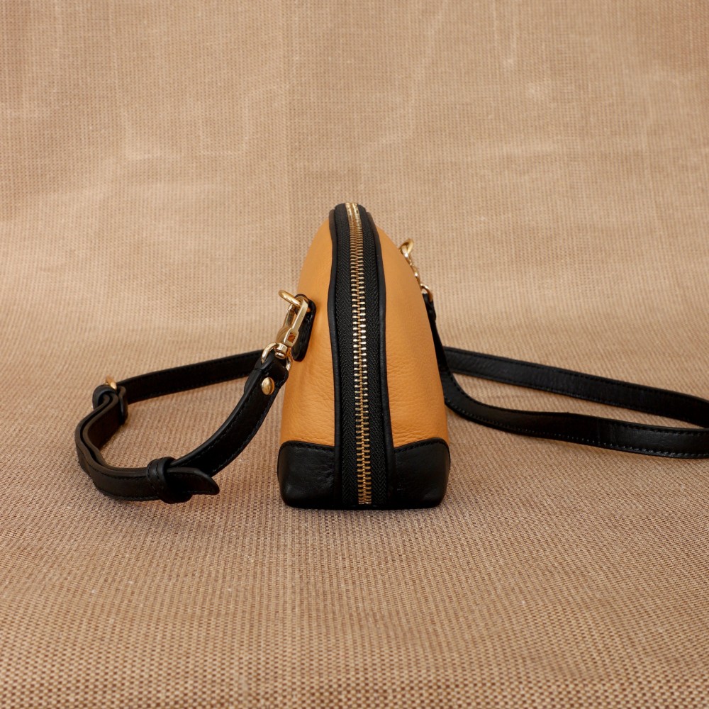 • Handmade Peach Charcoal Sling Bag Leather Polished