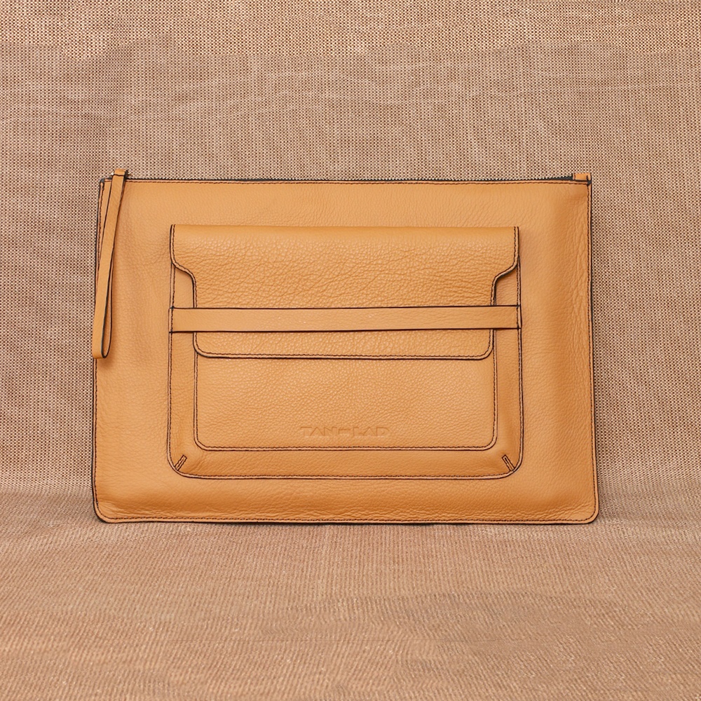 Crafted with amazing Peach leather, it features a reliable zipper closure, the Gabby Sleeve opens to reveal a thoughtfully designed main compartment, providing ample room for your laptop and important documents. It also boasts a patch pocket and a utility pocket, both equipped with a common flap closure, offering organized storage for smaller items like chargers, pens, or a diary.