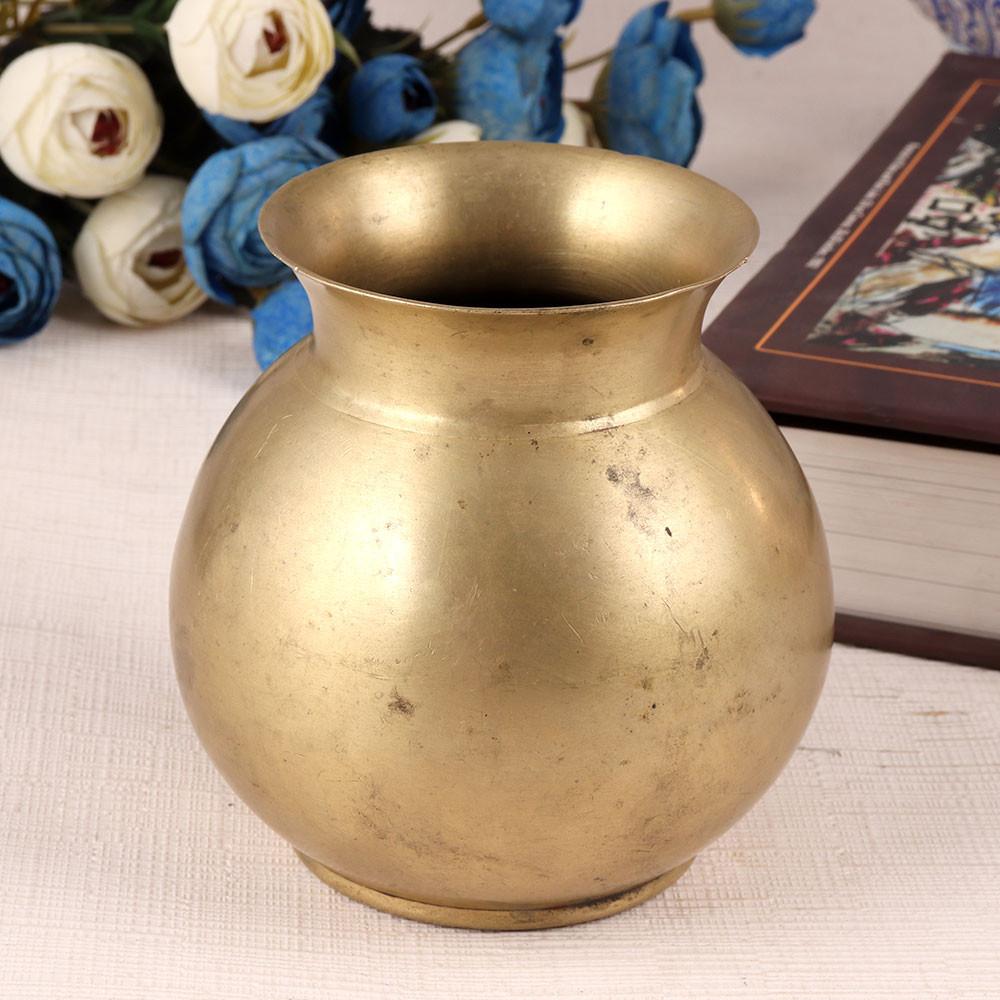 The brass water pot or lota is a traditional Indian item that has been used for centuries during religious ceremonies and rituals. This stunning pot is made from high-quality brass and has an antique brown finish. It is commonly used to store holy water during Pooja, havans, and other auspicious occasions. The brass water pot is also a versatile item that can be used for decoration or as an indoor flower pot. It is perfect for offering water to the sun god or milk to the Shivling. The brass water pot is a symbol of purity and devotion, and it adds a touch of elegance and grace to any home. Gift it to your near and dear ones on special, festive and auspicious occasions.