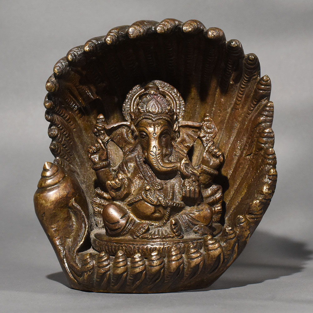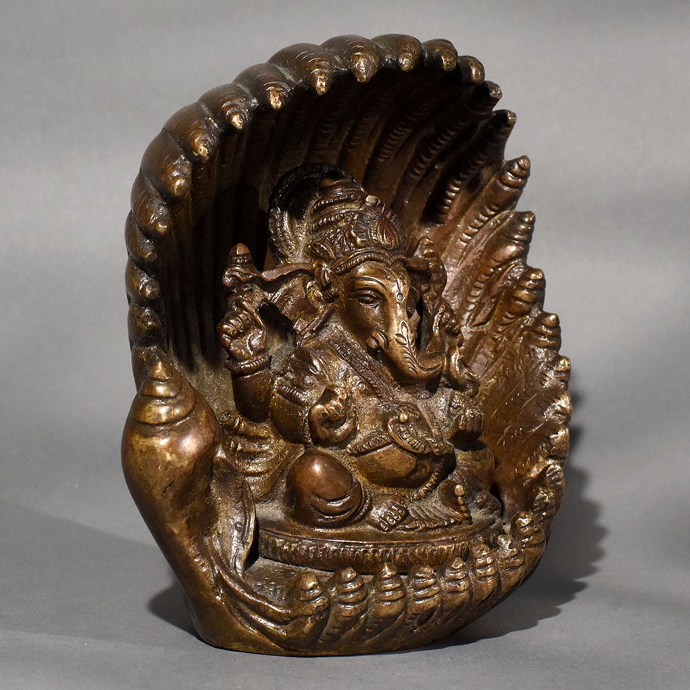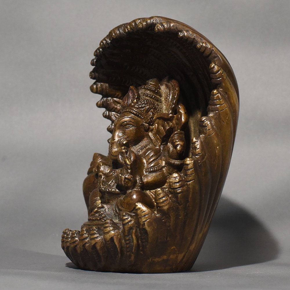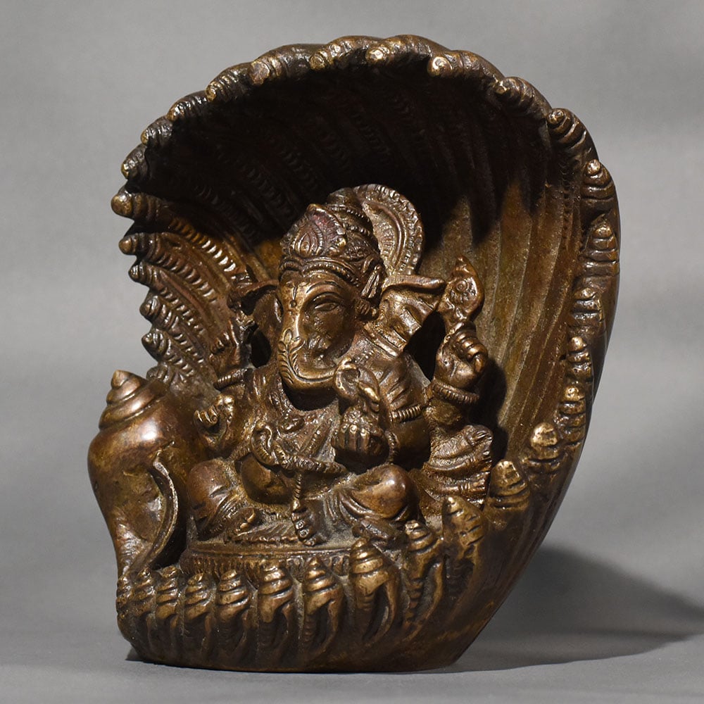 This handmade brass Lord Ganesha sitting inside conch shell statue is a powerful symbol of purity, prosperity, and divine blessings. Carefully crafted by skilled artisans, the sculpture depicts Lord Ganesha seated gracefully within a sacred conch shell, an emblem of auspicious beginnings and spiritual resonance. Made from solid brass, the statue features rich detailing across the deitys form, ornaments, and the flowing curves of the conch. The naturally aged patina adds a vintage, temple-inspired character, enhancing its spiritual presence. Lord Ganesha, revered as the remover of obstacles and the god of wisdom and success, is beautifully represented in a calm and meditative posture. The conch shell surrounding the deity signifies positive energy, protection, and sacred sound, making this statue especially meaningful for prayer and meditation spaces. Ideal for pooja rooms, home temples, or as a centerpiece in spiritual dcor, this brass sculpture brings harmony and devotion into any environment. It also makes a thoughtful gift for religious occasions, housewarmings, or festive celebrations, blending traditional symbolism with timeless handcrafted artistry.