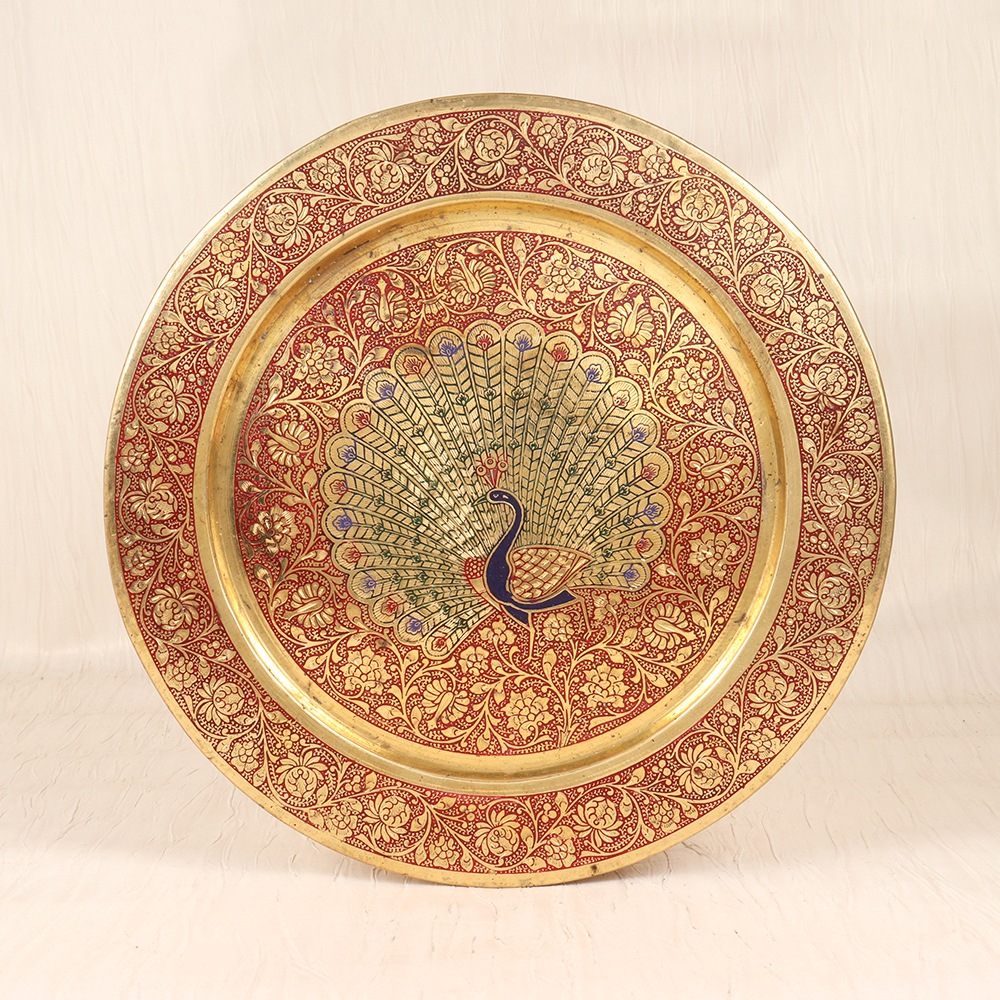 Stop settling for bland, forgettable decor. Introduce a true statement piece that will transform any room into a sophisticated, eye-catching oasis. Feast your eyes on the Vintage Brass Peacock Plate - a stunning work of art crafted from high-quality brass and adorned with a breathtaking peacock design in vibrant red and blue enamel. This captivating plate isn't just a piece of decor - it's a true conversation starter that will elevate your space and infuse it with timeless elegance. Imagine its warm brass tones and vibrant blue and red enamel accents drawing the eye and igniting wonder in all who behold it. Whether you're decorating your living room, bedroom, or entryway, this plate will instantly become the focal point that sets your home apart. Don't settle for generic, mass-produced wall art. Treat yourself or a loved one to the Vintage Brass Peacock Plate and experience the joy of surrounding yourself with unique, handcrafted beauty that inspires and delights every single day.
