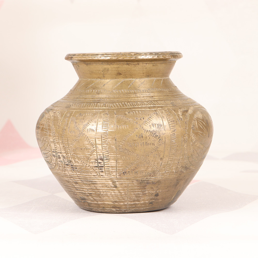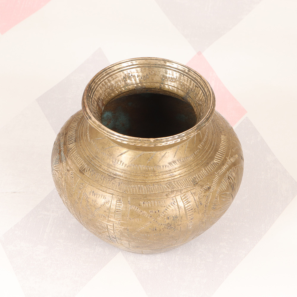 Discover the beauty and power of this stunning vintage brass holy water pot, meticulously crafted with intricate South Indian art carvings. This exceptional piece is more than just a vessel - it's a gateway to a deeper, more meaningful spiritual experience. This brass holy water pot is more than just a functional item - it's a work of art that can elevate your spiritual practice and transform your sacred space. Imagine the calming presence it will bring to your meditation, the reverence it will inspire during your puja, or the sense of connection it will foster with your cultural heritage. Whether you're looking to deepen your personal devotion or seeking a beautiful addition to your altar, this exquisite brass pot is the perfect companion. Its timeless beauty and cultural significance will imbue your rituals with a sense of authenticity and sacredness, allowing you to fully immerse yourself in the divine. Elevate your spiritual journey with this stunning brass holy water pot today.