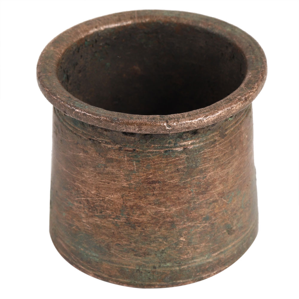 Handmade rustic brass panchpatra cup is used to store charnamrit or holy water and distribute it to devotees after the pooja or rituals are completed. It is used for house detoxification. A perfect home decor item for worshipping at home as well as gifting on any ceremony.