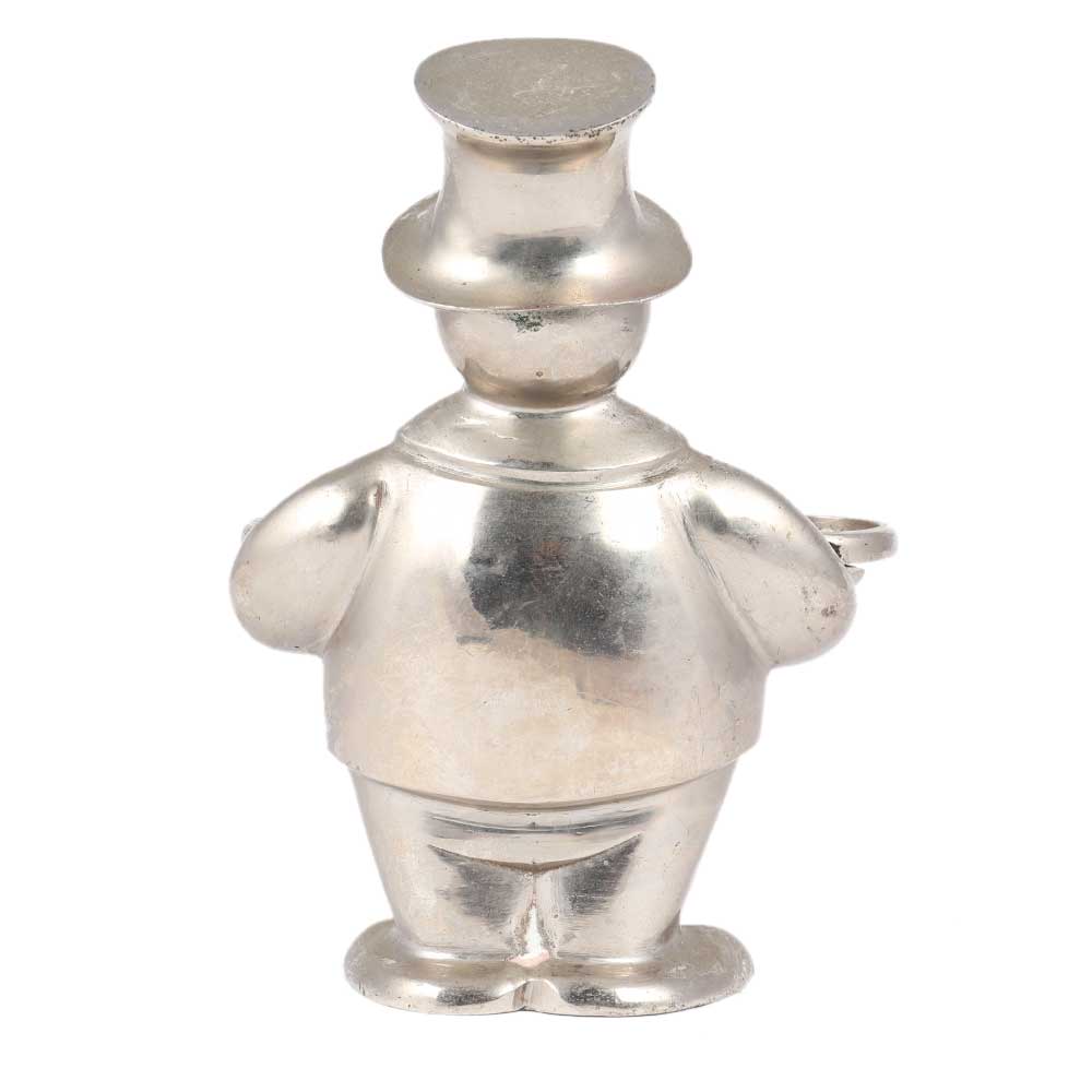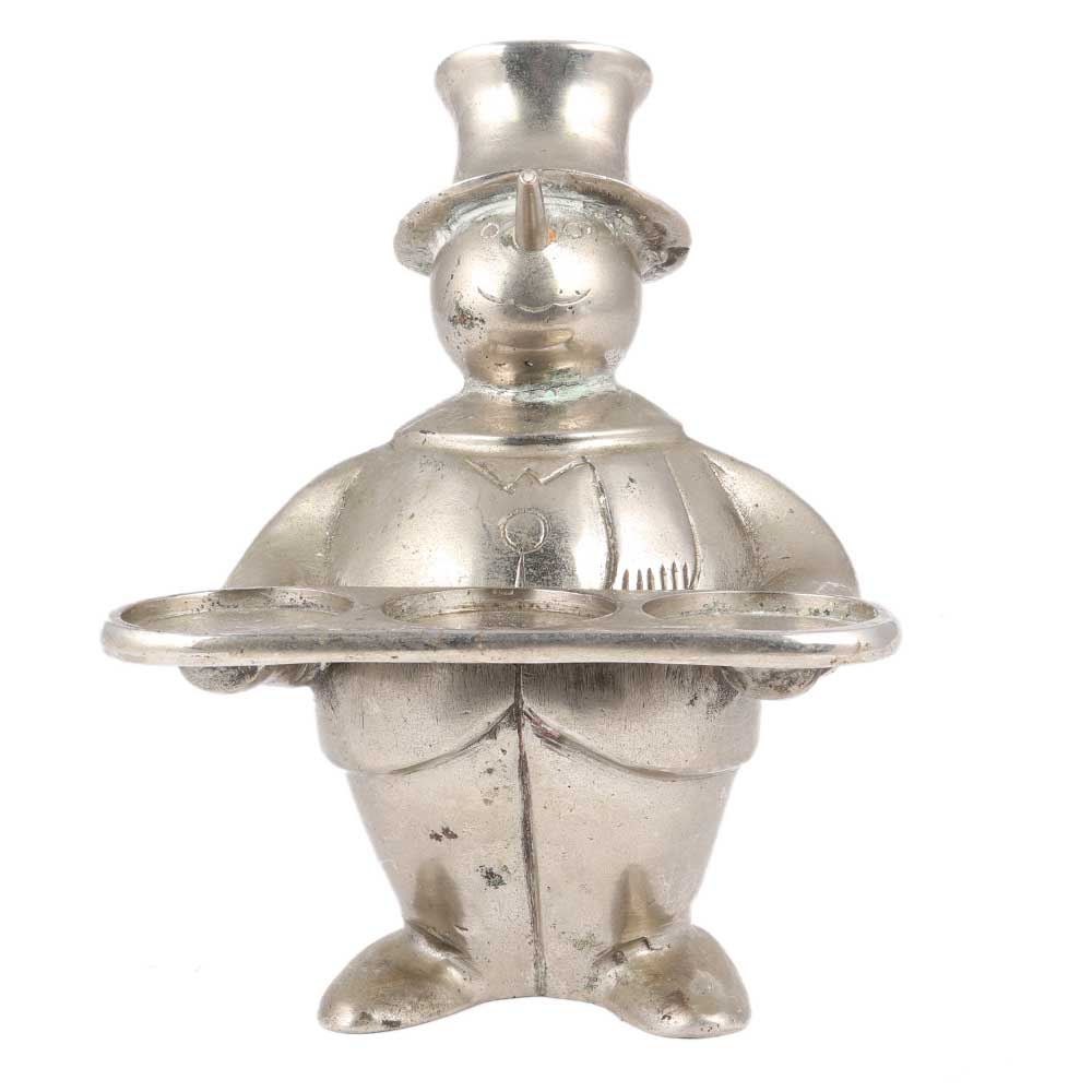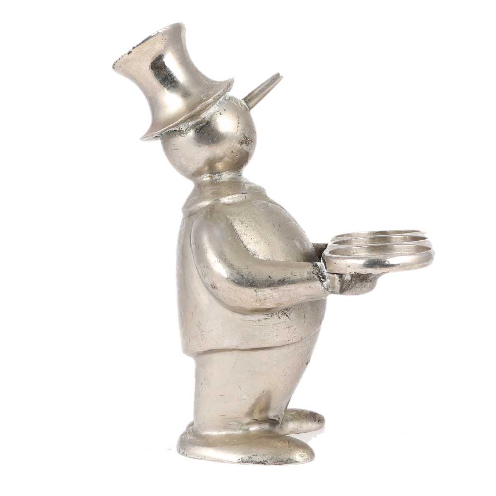 Handmade Silver Brass Fat Man Statue Wearing Hat Holding Long Tray