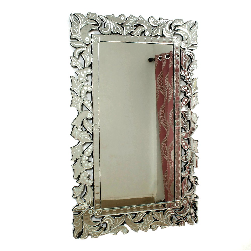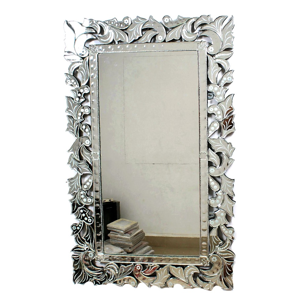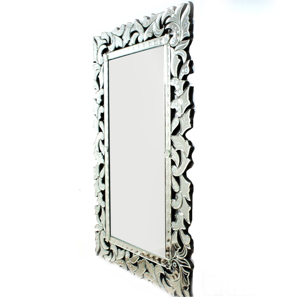 Handmade Silver Glass Ornate Square Modern Venetian Mirror