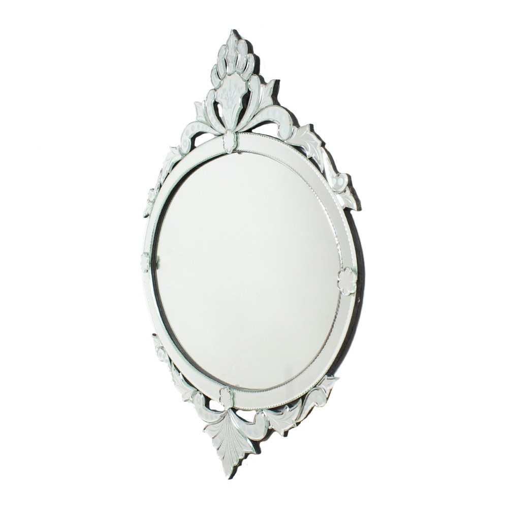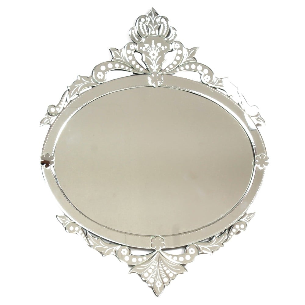 Handmade Silver Glass Oval Venetian Mirror With Etched Design
