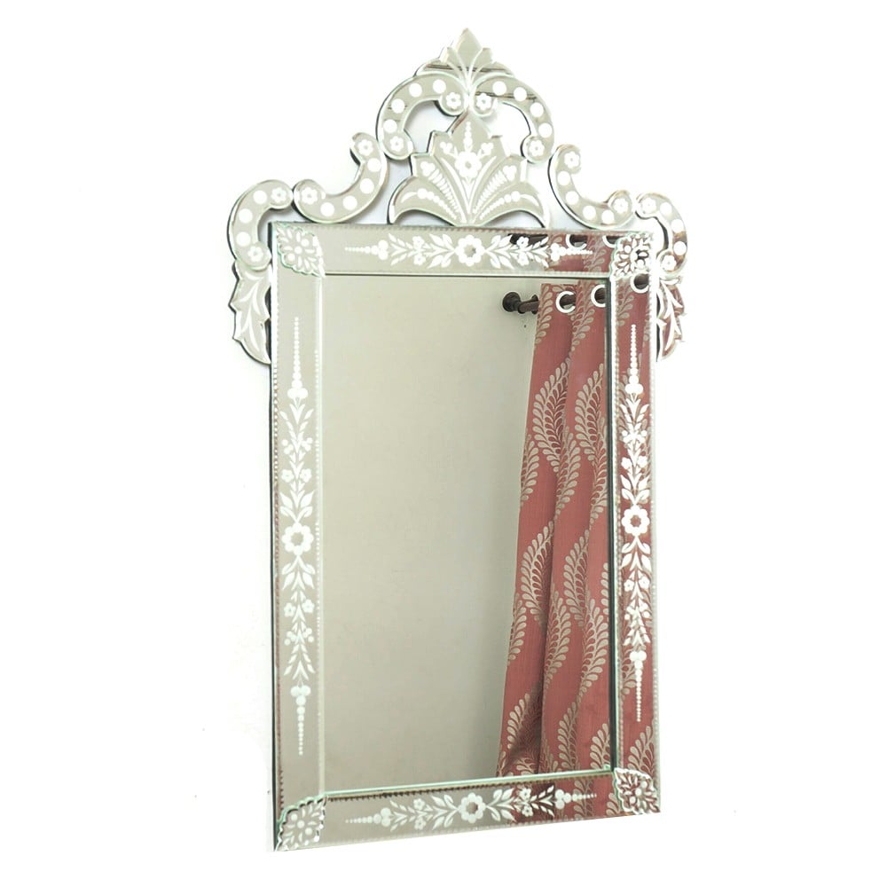 Handmade Silver Glass Rectangular Etched Venetian Mirror
