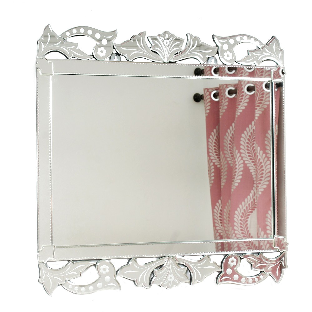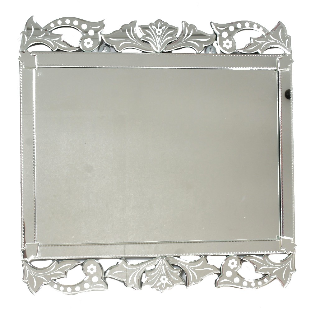 Handmade Silver Glass Rectangular Venetian Mirror With Etching