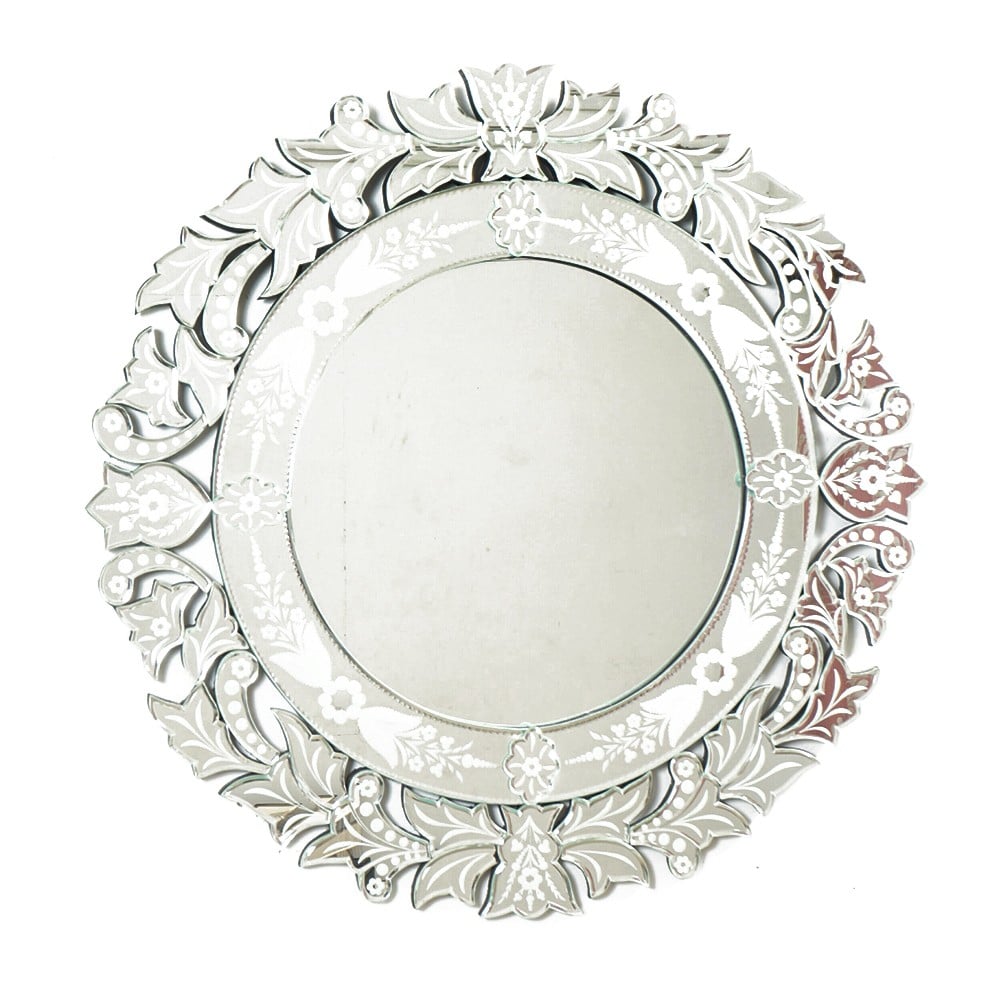 Handmade Silver Glass Round Floral Frame Etched Venetian Mirror