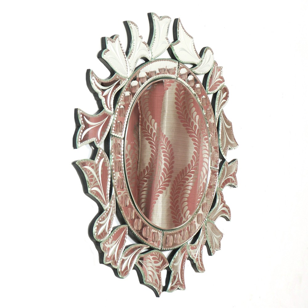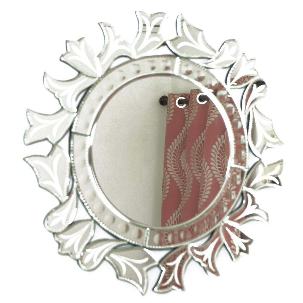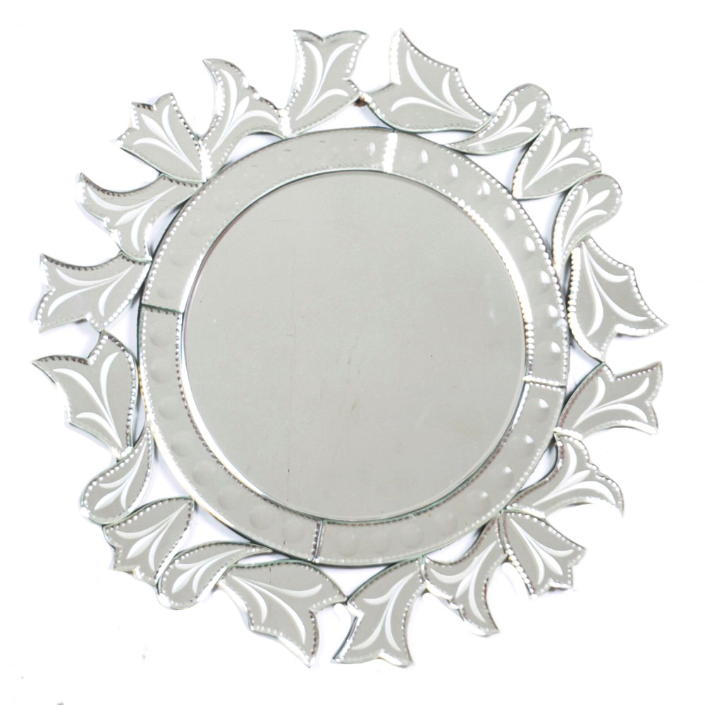 Handmade Silver Glass Round Venetian Mirror With Elaborate Design