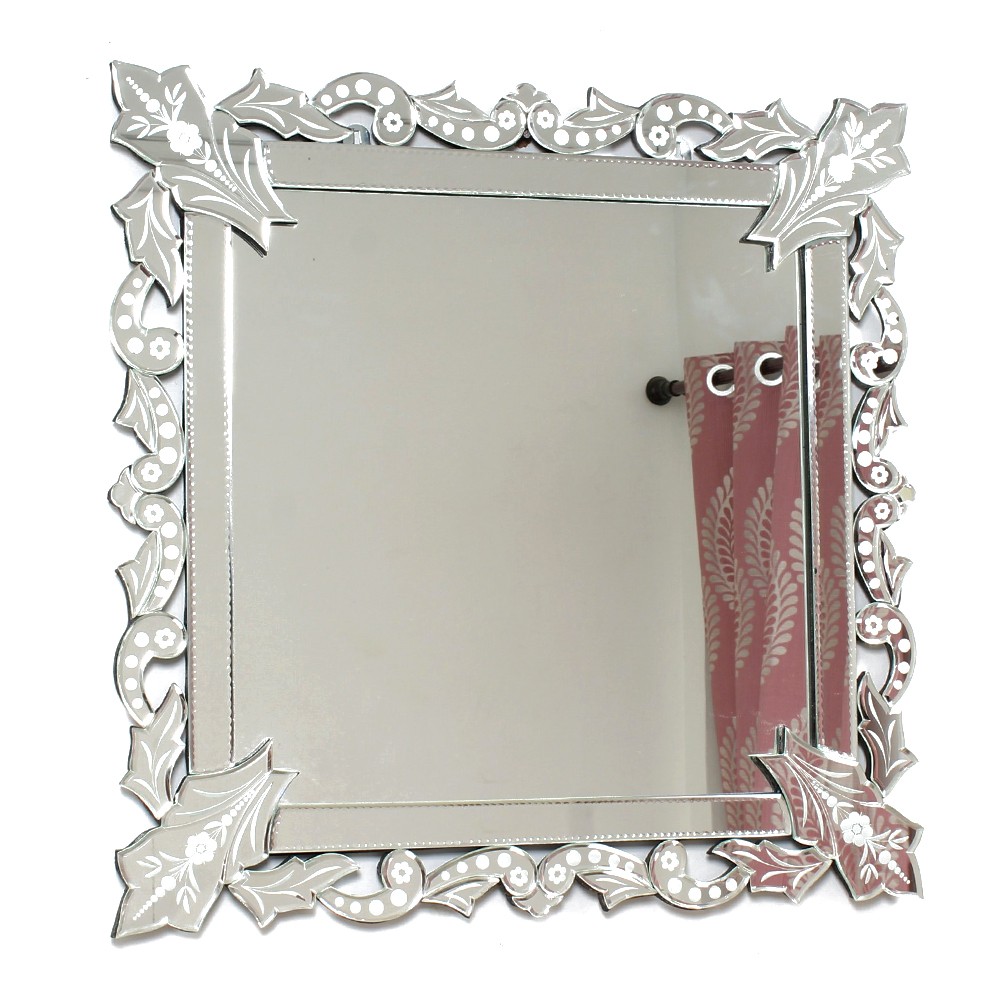 This designer square-shaped Venetian glass mirror will make an impact on the mind of the beholder. This glass mirror will innovatively embrace your wall and completely transform it