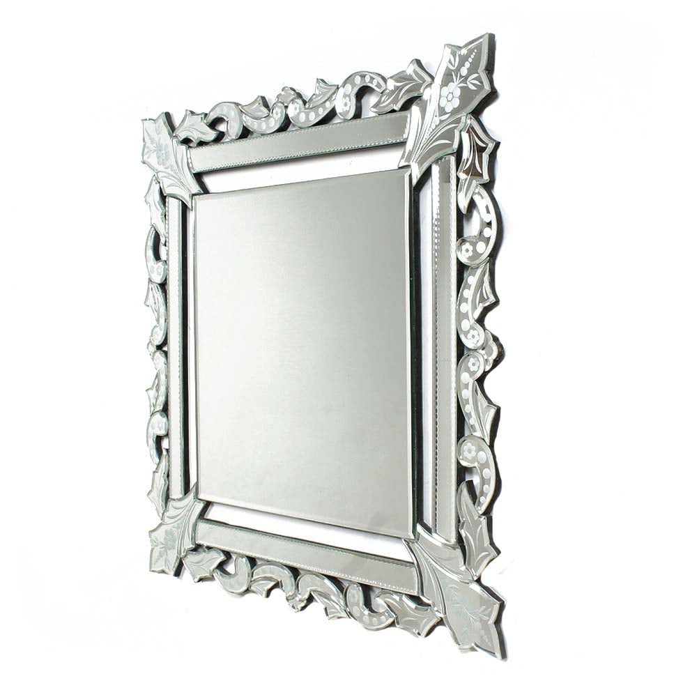 Handmade Silver Glass Squared Wall Mounted Venetian Mirror