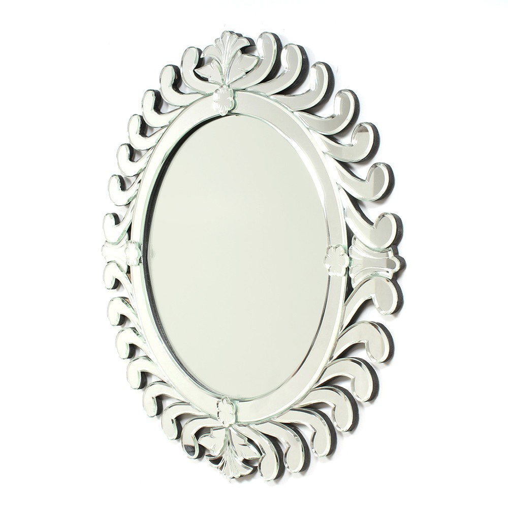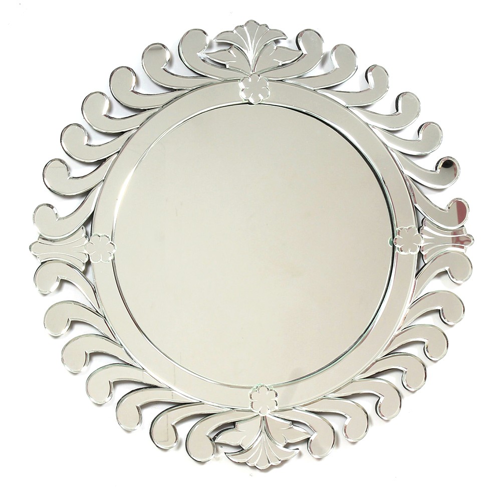 Take wall decor to new heights by hanging this round etched Venetian wall mirror with Silver-toned geometric patterns made from mirrored glass to create a dazzling modern-art display for your home.