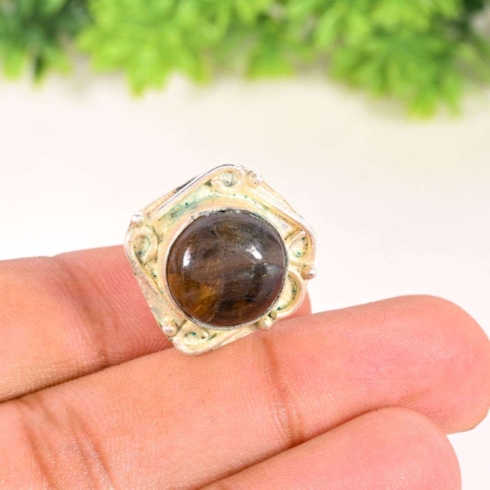The Handmade Silver Plated Ring with Labradorite Gemstone for Women is a refined expression of natural beauty and artisan skill. Crafted in brass and finished with smooth silver plating, this ring features a luminous labradorite stone known for its soft flashes of blue and grey. Its compact size makes it ideal for everyday wear while still offering a distinctive gemstone presence. Designed to feel personal and graceful, it blends minimalism with quiet elegance.