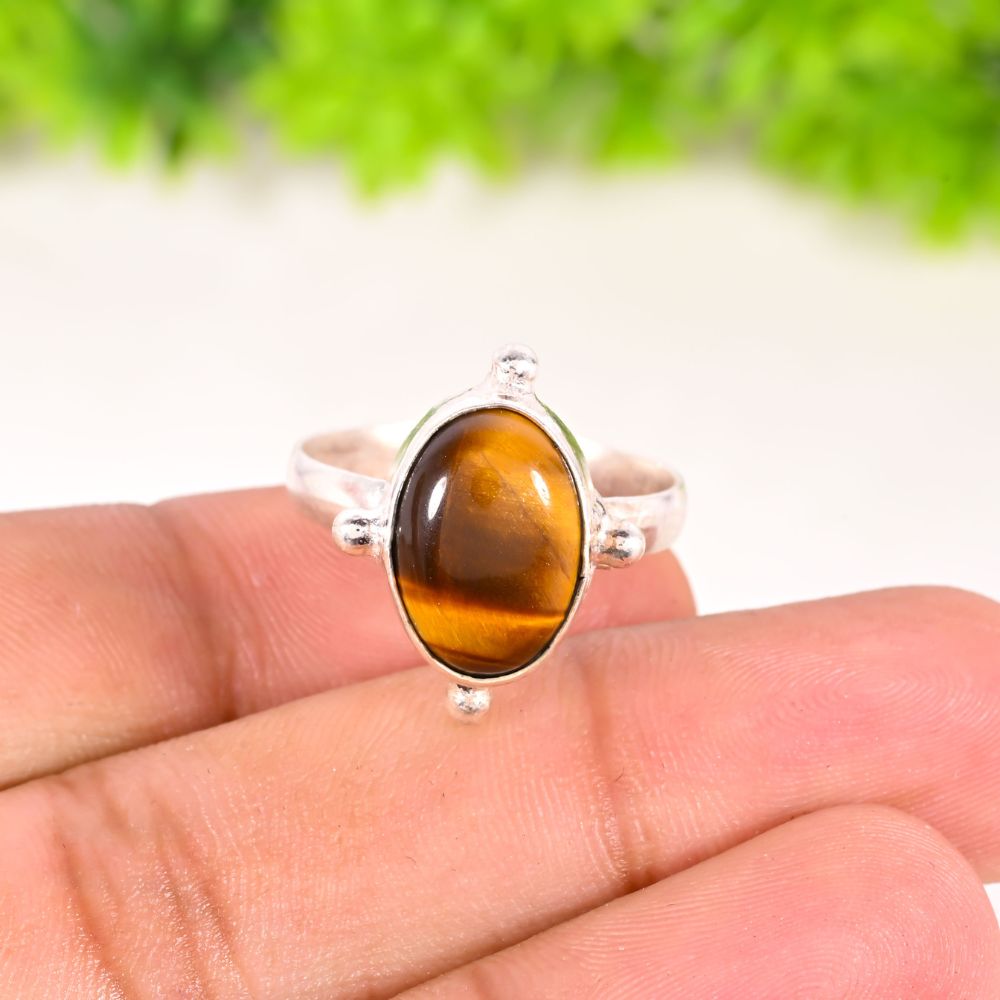 The Handmade Silver Plated Ring with Oval Tiger Eye Gemstone for Women is a graceful blend of strength and refined craftsmanship. Crafted in brass and finished with smooth silver plating, this ring showcases an oval tiger eye gemstone admired for its rich golden-brown bands and natural light reflection. Slightly larger in profile, it offers a confident statement while remaining comfortable for everyday wear. Designed for women who appreciate meaningful gemstones and timeless design, this ring feels bold yet elegant.