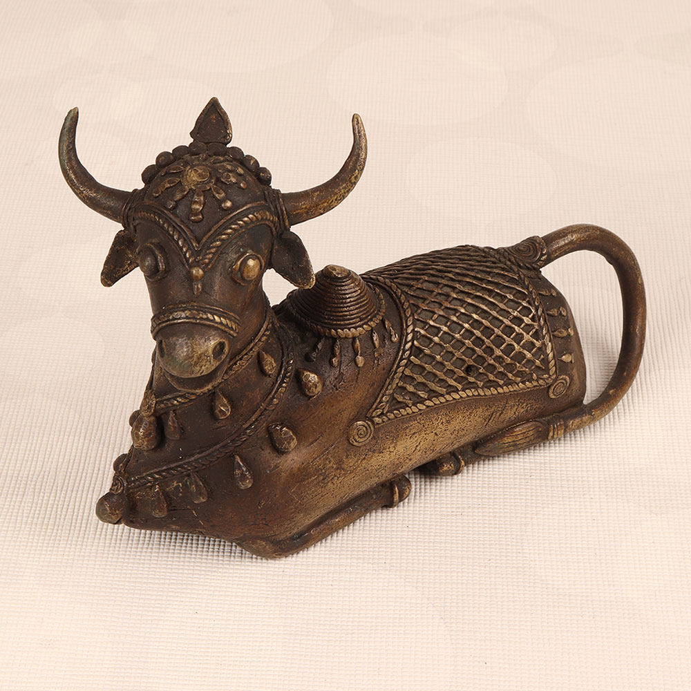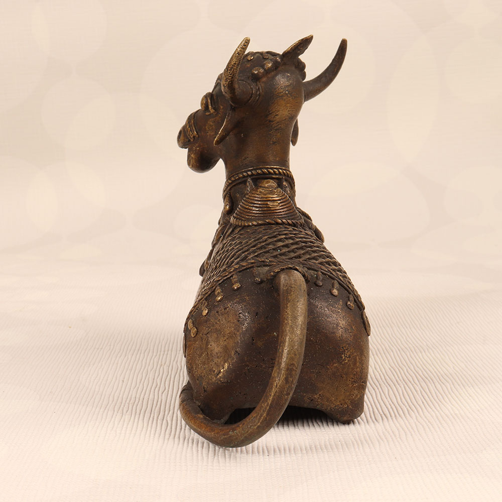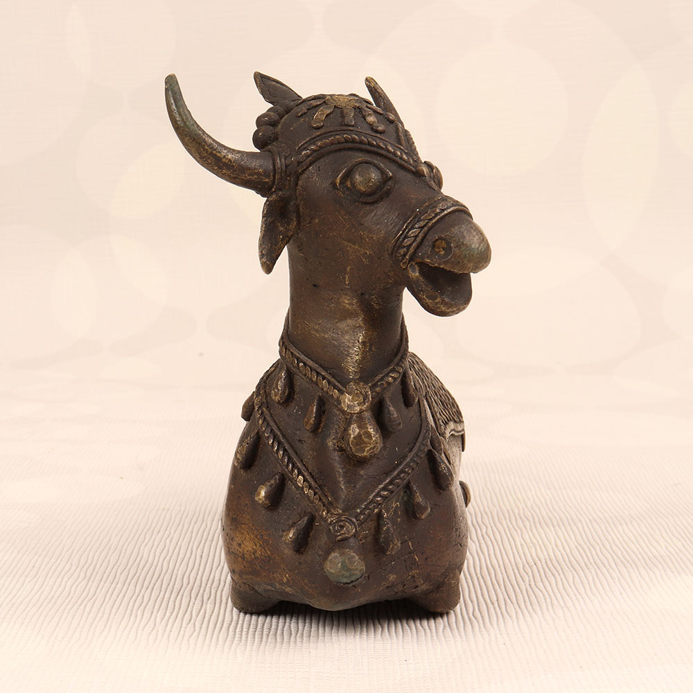 Enhance your sacred space with the timeless elegance of this Vintage Brass Nandi Statue. Crafted in a sitting position, this exquisite piece captures the essence of Nandi, the revered vahana (vehicle) of Lord Shiva. Meticulously handcrafted by skilled Indian artisans in Tribal Art, the statue boasts a rich, dark finish that adds a touch of mystique and antiquity. Made from high-quality brass, this unique creation is a testament to the artistry and craftsmanship of a bygone era. Versatile in its appeal, it seamlessly fits into various settings, be it your home, office, restaurant, hotel, or cafe. Ideal for prayer rooms and as a decorative accent, this Nandi statue adds a spiritual aura to any space. Embrace its historical charm by integrating it into your vintage collection, or present it as a thoughtful gift to your loved ones on special, festive, or auspicious occasions.