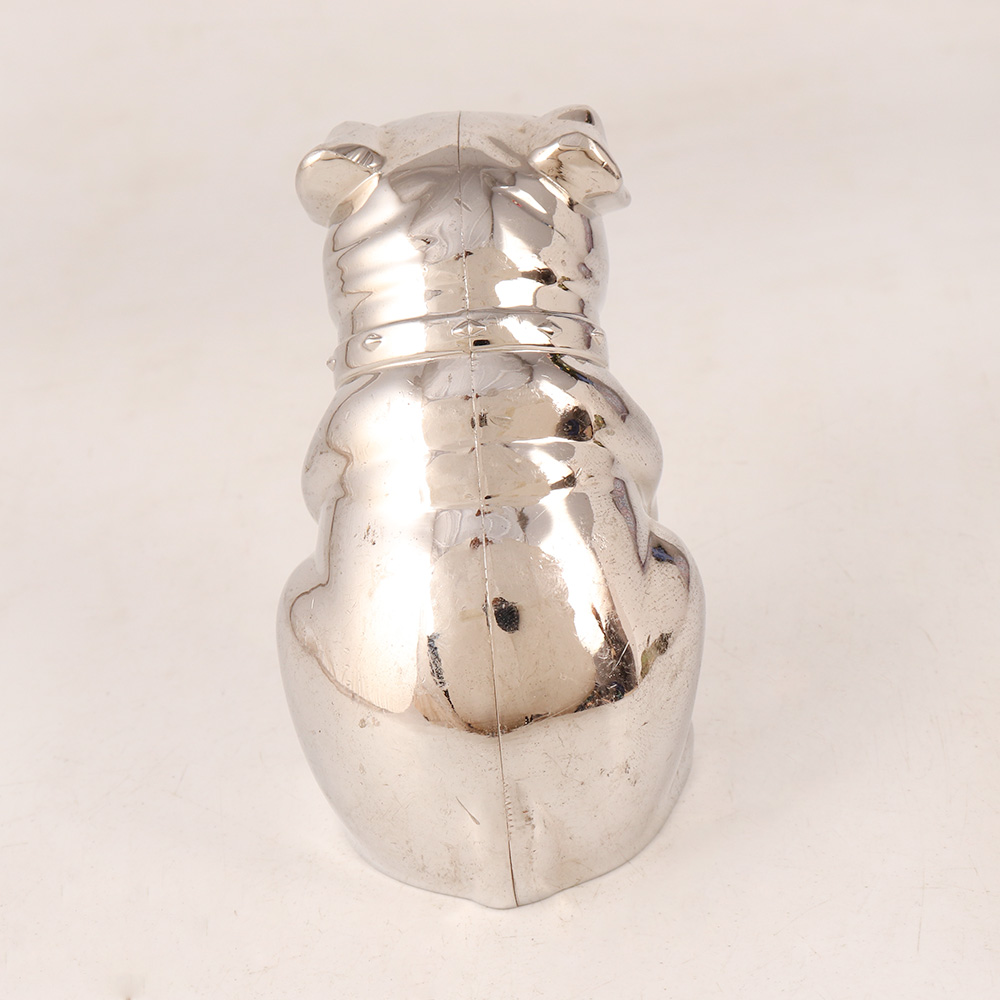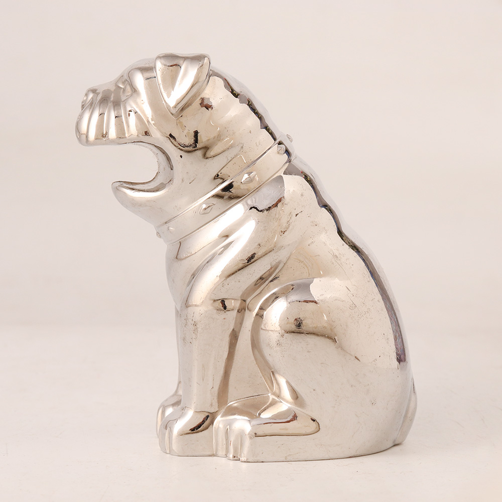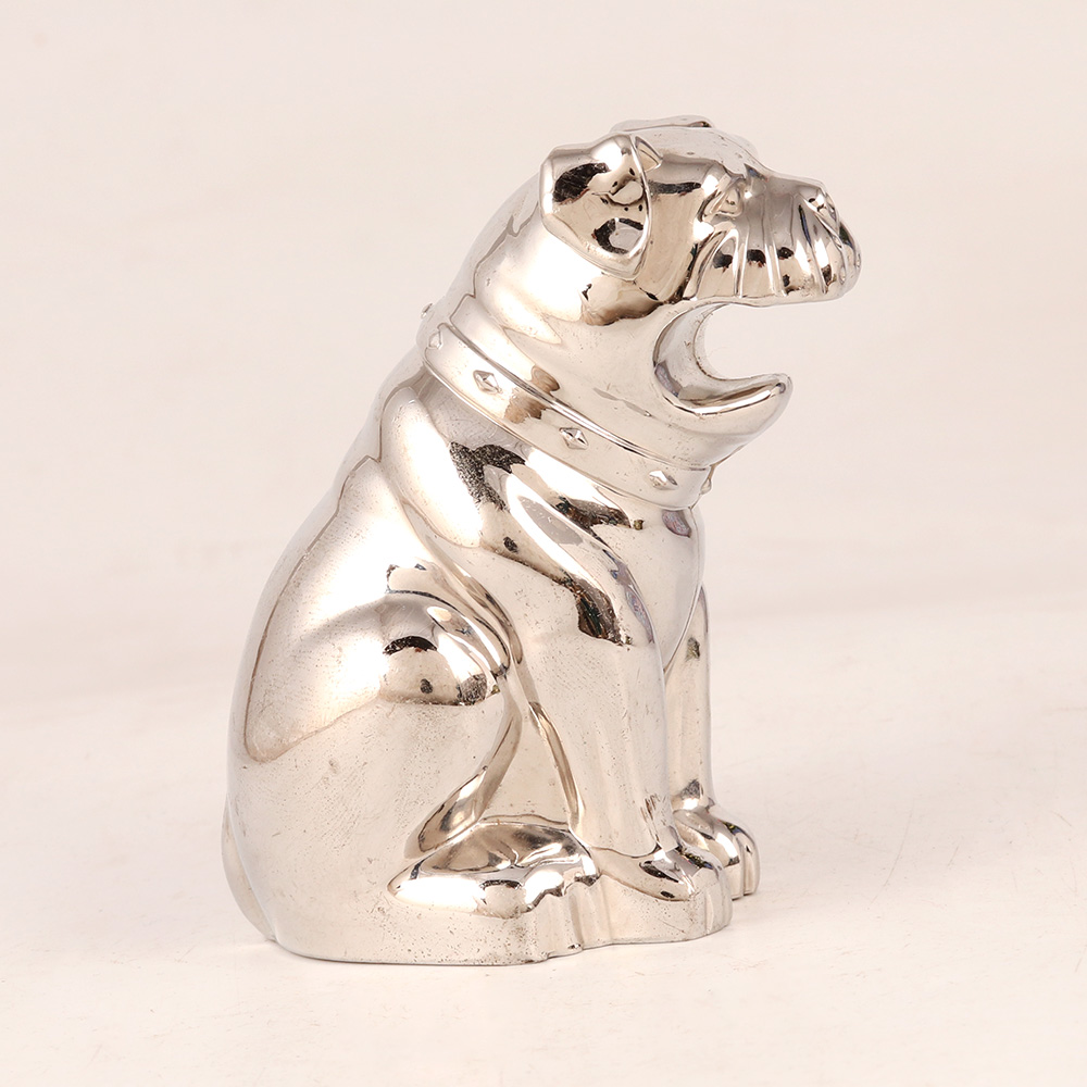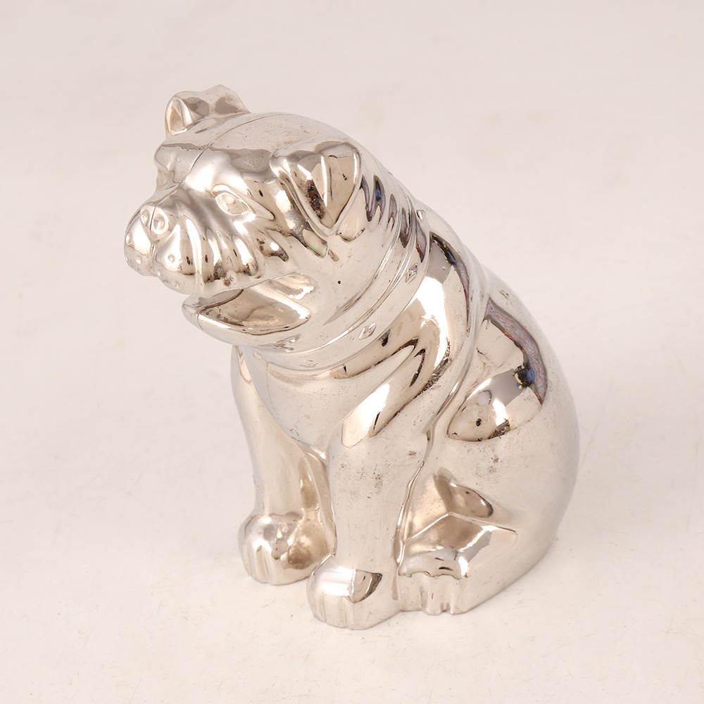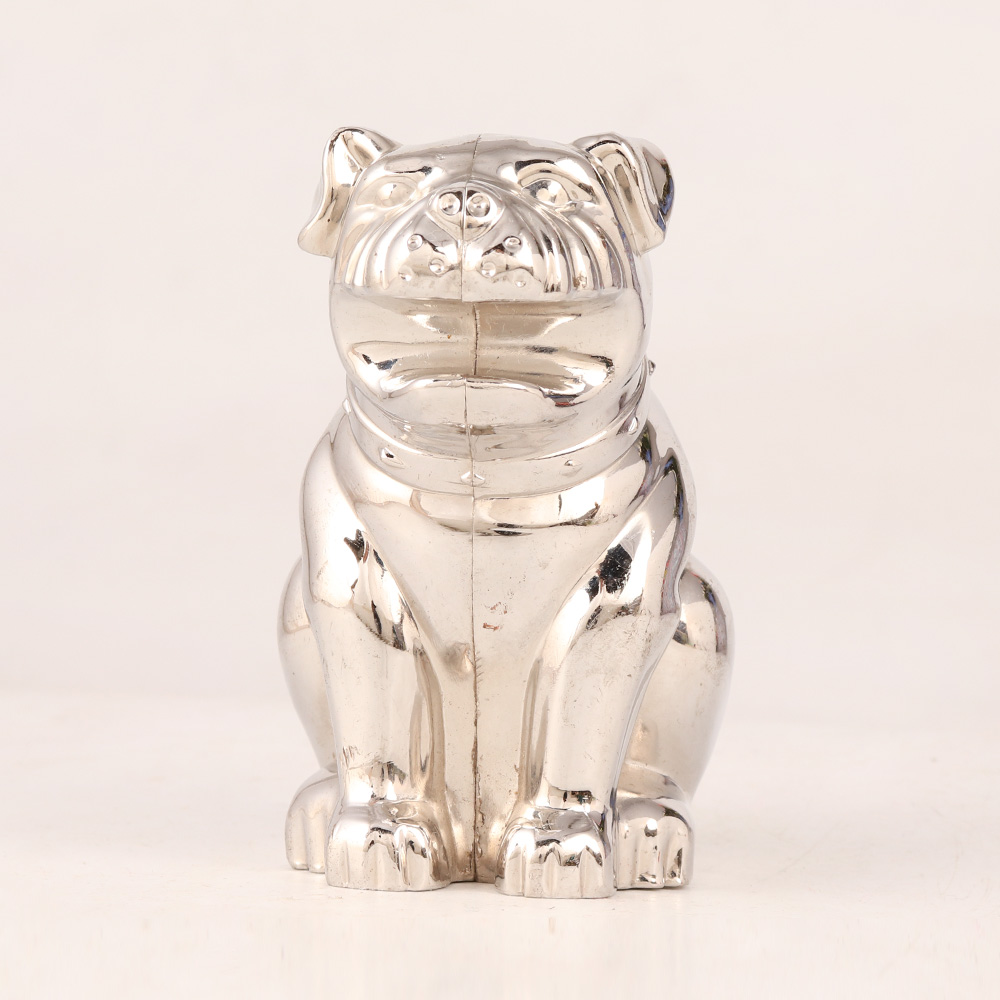 Buy a Small Metal Dog Statue in a sitting position which is a captivating piece of art that seamlessly blends timeless beauty with contemporary allure. Meticulously handcrafted by talented artisans, this exquisite creation showcases their artistry and dedication to detail. Crafted from premium quality metal, its shiny silver finish exudes a lustrous charm that effortlessly catches the eye. Versatility defines this enchanting statue, making it a delightful addition to any space. Whether adorning the living room at home, enhancing the ambiance in an office, gracing a shop, restaurant, or hotel, this statue brings sophistication to any setting. Embracing its versatility, it also finds its place in vintage collections, museums, or exhibitions, adding a touch of history to any display. As an extraordinary gift option, this mesmerizing metal dog statue becomes a symbol of love and appreciation, perfect for presenting to your cherished ones on special or festive occasions.