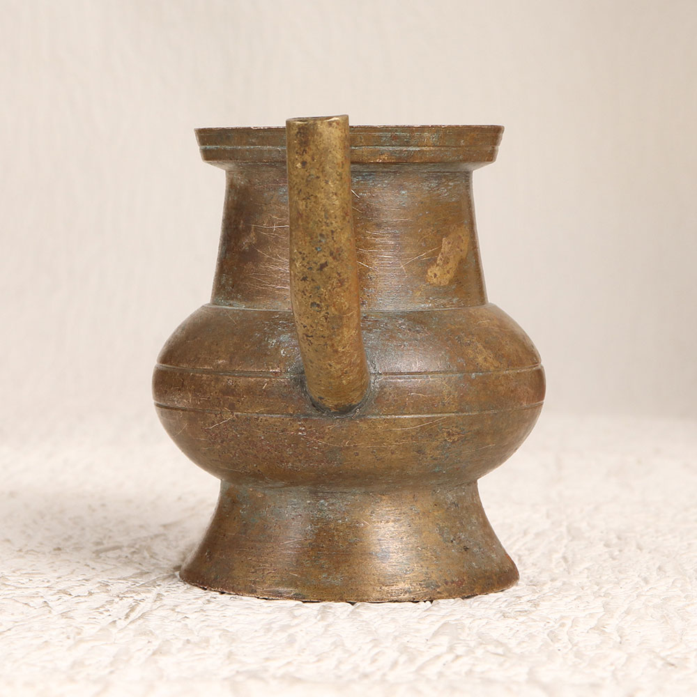 Adorn your interior with this exquisite vintage brass holy water pot that is a true embodiment of Indian craftsmanship. Meticulously handcrafted by highly skilled and experienced artisans in the heart of South India, this piece showcases the time-honoured tradition of South Indian artistry. Its antique brown finish exudes a sense of timeless elegance, making it a versatile addition to any setting. Crafted from high-quality brass, this holy water pot boasts a stunning vintage charm that lends itself to various purposes. Whether you choose to use it as a striking decorative flower pot in your home, office, restaurant, hotel, cafe, or shop, or during your daily prayers, it adds a touch of spiritual grace to any space. Historically, these pots were employed to offer water to devotees, adding an aura of sacredness to your surroundings. Perfect for collectors and enthusiasts, this vintage piece can enhance your collection or serve as a captivating exhibit at special events. Additionally, this brass holy water pot makes for a thoughtful and meaningful gift for your loved ones during special, festive, or auspicious occasions.