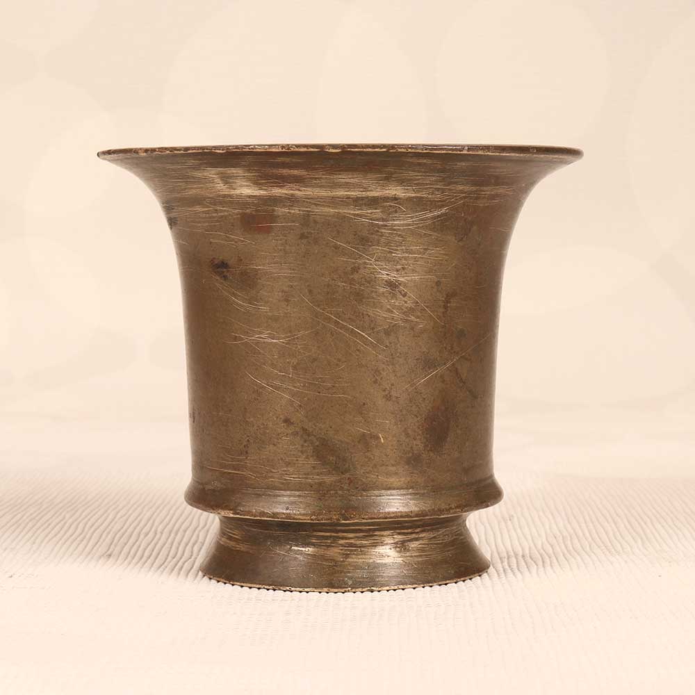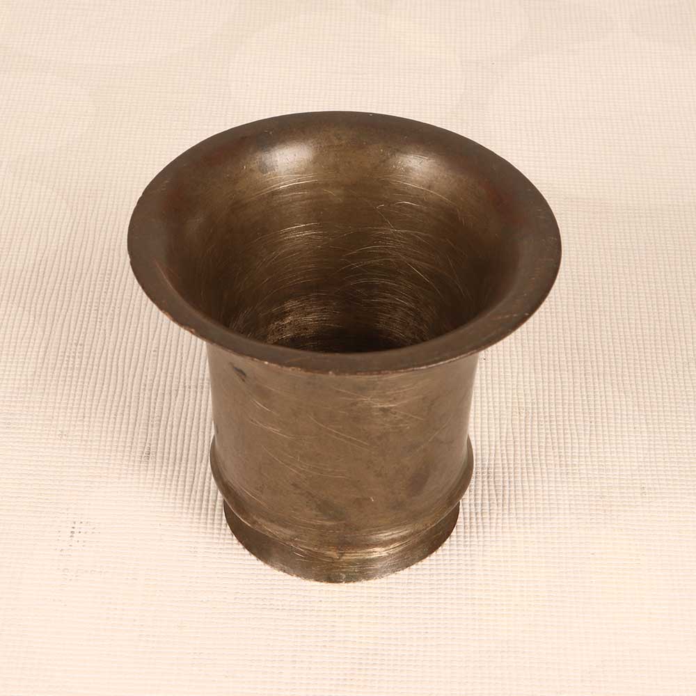 Capture the essence of spirituality with the Vintage Brass Holy Water Cup. This elegant cup crafted in South Indian art style adds a graceful touch to any home. Made of solid brass with a plain brown finish, it makes a unique home decor accent. The cup features delicate etchings and motifs reminiscent of Indian temples. The wide, curved brim allows fragrant flowers or rose petals to be artfully arranged. Place it on an entryway table, bookshelf or mantle to uplift the ambiance. Use it as part of a meditation space to hold water or sandalwood paste. Let this special brass cup bring a whisper of ancient tradition into your home. Display it as a beautiful reminder to nourish your inner spirit each day. For those drawn to Indian culture or seeking a serene addition to their home decor, the Vintage Brass Holy Water Cup delivers graceful, meaningful style.