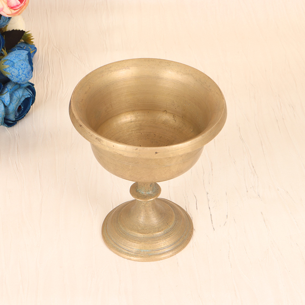 This vintage-inspired brass kumkum cup is a beautiful and functional piece that will elevate your spiritual practice. Crafted with care using time-honored techniques, it features a classic South Indian design that exudes a sense of timeless elegance. The plain brown finish gives it a rustic, earthy aesthetic that will blend seamlessly into your prayer space or puja altar. Made from sturdy brass, this cup is built to last, allowing you to use it for years to come as you connect with the divine through your daily rituals and meditations. Whether you're looking to replace an older kumkum holder or seeking to add a meaningful new piece to your sacred space, this brass cup is an investment in your spiritual well-being. Its simple, understated beauty provides the perfect vessel for holding the vermilion, kumkum, or other ritual powders that are an integral part of South Indian prayer and worship. Embrace the grounding energy of this timeless design and let it deepen your connection to your spiritual practice.