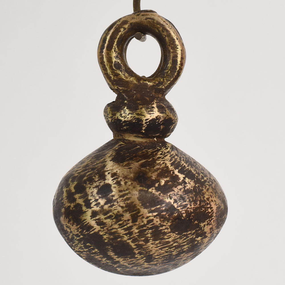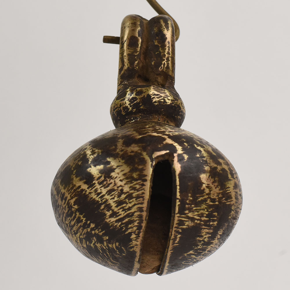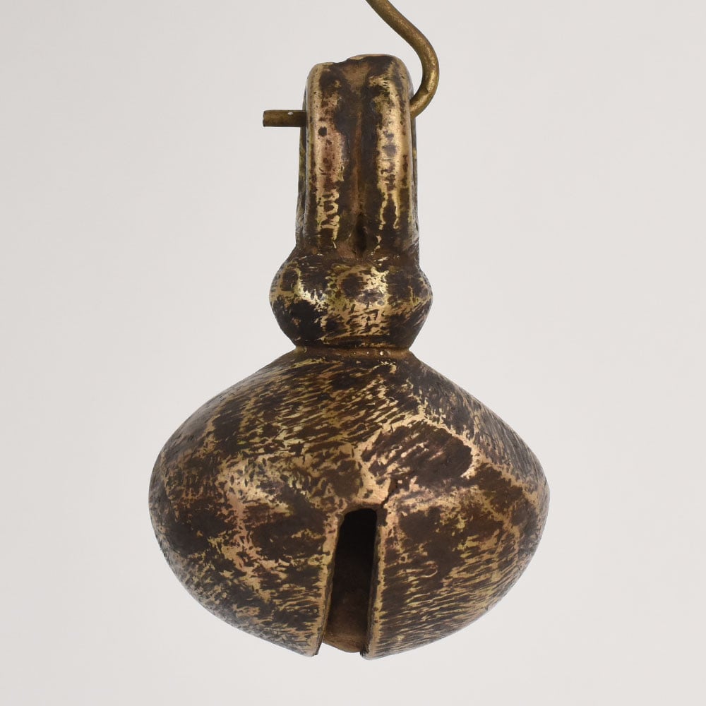 This vintage rustic brass cow bell is a timeless handmade piece that captures the essence of rural craftsmanship. Fashioned from strong bell metal with detailed hand-finishing, this handcrafted bell once served to identify livestock grazing across large open lands. Its aged patina, textured artistry, and sturdy top loop reflect both utility and beauty. Perfect for decor enthusiasts, collectors, and anyone who appreciates handmade artifacts, this bell can be used as a garden ornament, farmhouse accent, or functional bell for animals. Its rich tone resonates clearly, giving it practical value, while its vintage appearance makes it a striking decorative item. Whether displayed indoors or outdoors, this handcrafted cow bell adds warmth, authenticity, and rustic elegance to any environment. Bring home a piece of heritage and let its charm enhance your space.
