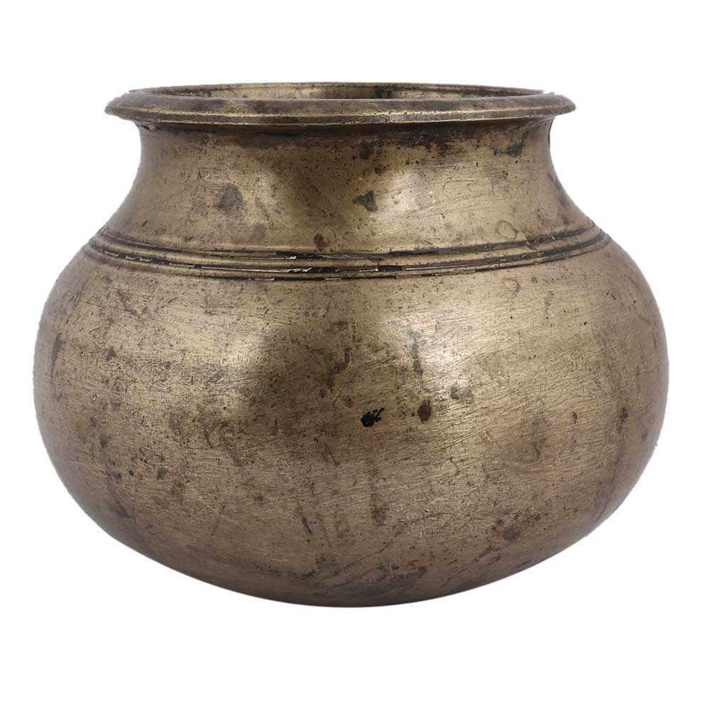 Handmade Tamil Nadu Brass Round Water Pot large belly, narrow neck and wide opening mouth. Made by expert artisans of India this is a lovely home decor product use it as a flower pot , storage pot or as a wedding gift, stage decoration and great gift for your friends and family.
