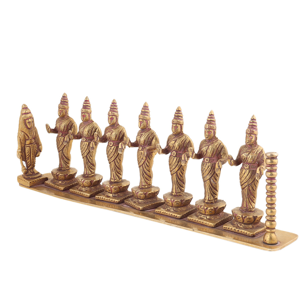 This rare and unique seven brass Laxmi statue with lord Hanuman standing with folded hands is made by expert artisans using traditional methods. You can gift it to your friends and relatives, place it in the pooja room or temple.
