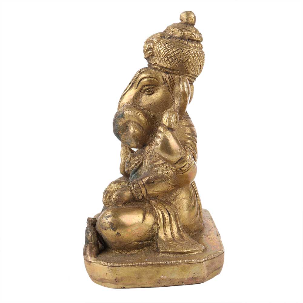 Handmade Tarnished Brown Brass Ganesha Sitting Idol