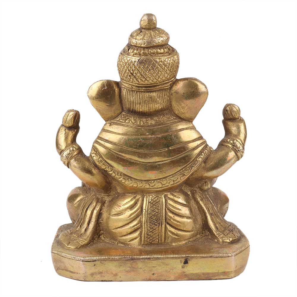 • Handmade Tarnished Brown Brass Ganesha Sitting  Idol