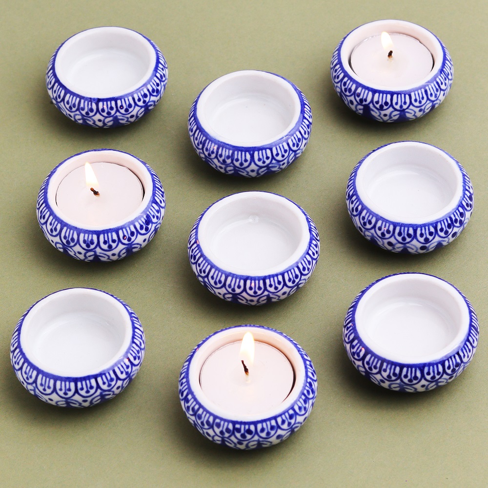 Indianshelf.com for bulk/wholesale orders.Indianshelf.us for personal purchases.Create a warm, inviting atmosphere with the Handmade Tea Light Holder Set crafted from premium ceramic. This set of nine holders is designed to enhance any room, providing soft illumination along with an artistic flair. Perfect for home décor, parties, or special occasions, these tea light holders bring elegance and warmth to any setting.