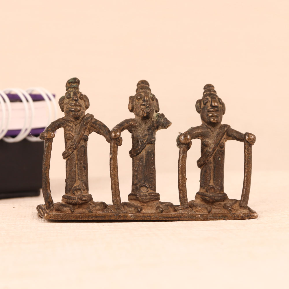 Buy a brass statue featuring three distinguished men in a rich vintage brown finish. This remarkable work of art has been meticulously handcrafted by highly talented artisans with an unwavering commitment to quality. Crafted from high-quality brass, this statue exudes an aura of sophistication and elegance. Standing proudly, these three men exquisitely capture the essence of a bygone era, making it a perfect addition to various settings. Whether gracing your home, office, restaurant, hotel, cafe, or shop, this statue adds an air of refinement and nostalgia. For collectors with an affinity for vintage treasures, this brass statue is an absolute must-have. It's not just a piece of decor, it's a piece of history waiting to adorn your collection. Furthermore, this stunning piece makes for a thoughtful and meaningful gift for your loved ones on special, festive, or auspicious occasions. It symbolizes your appreciation for artistry and your desire to share enduring beauty.