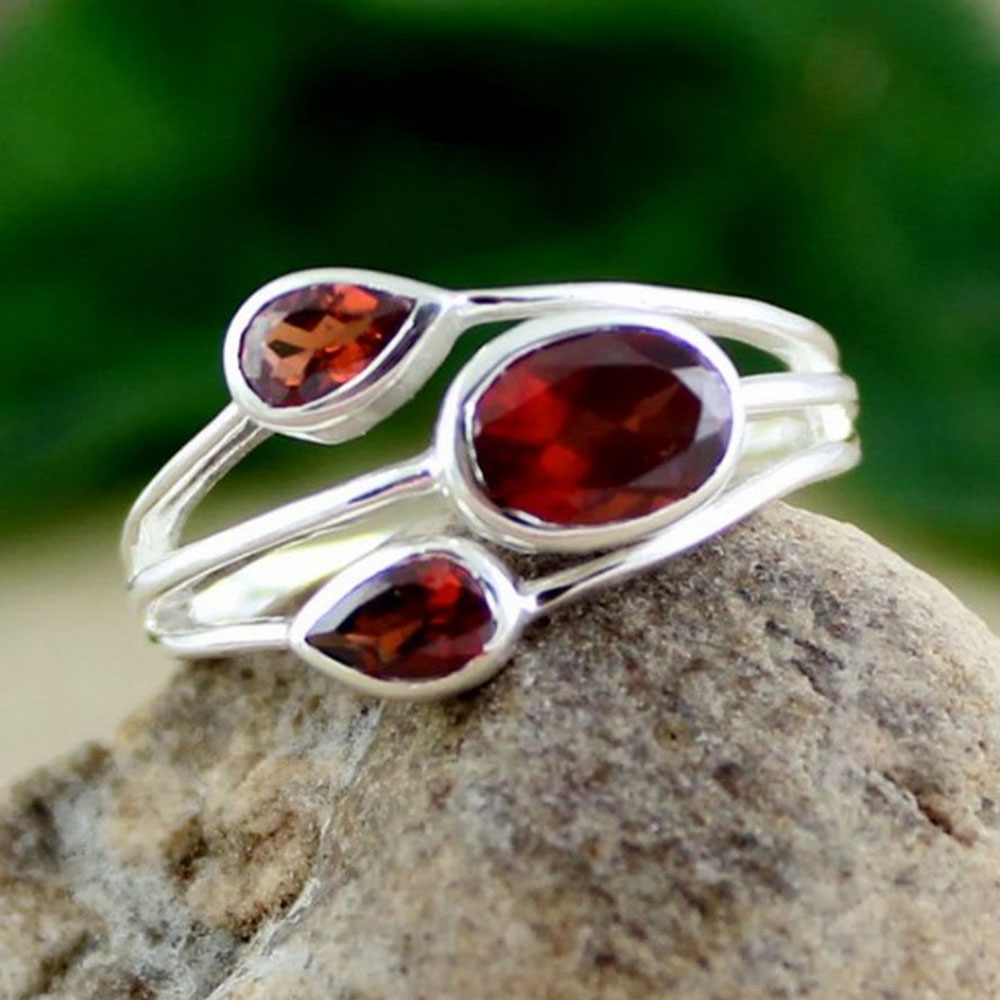 Delight in the allure of our handmade three red garnet ring 925 sterling silver boho jewelry, where three natural red garnet stones, 925 sterling silver and boho come together to create a classic beauty. This ring is for minimalist fans, each piece reflecting individuality and care. Packed & quality-checked by Indianshelf.