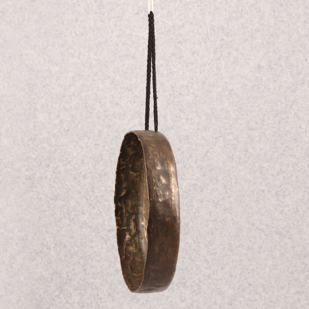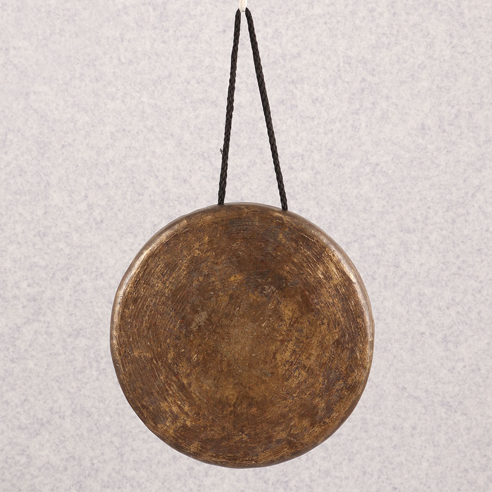 Enhance your space with the timeless charm of our Vintage Bell Metal Gong that is a masterpiece crafted by highly talented artisans in the intricate Tibetan Art tradition. This exquisite piece boasts a rich antique brown finish, exuding an aura of authenticity and sophistication. Meticulously handmade from high-quality bell metal, it resonates with a distinct, melodic tone that transports you to a bygone era. The gong comes complete with a string for easy hanging, allowing it to grace your home, office, restaurant, hotel, or cafe with its elegant presence. Its versatile design makes it a captivating decoration, adding a touch of cultural allure to any setting. Beyond its aesthetic appeal, this gong serves a purpose - its gentle tones can be used for meditation, relaxation, or to mark significant moments in your day. Ideal for vintage enthusiasts, this bell metal gong is a remarkable addition to any collector's trove. Moreover, it makes for a thoughtful and meaningful gift for your loved ones on special, festive, or auspicious occasions.