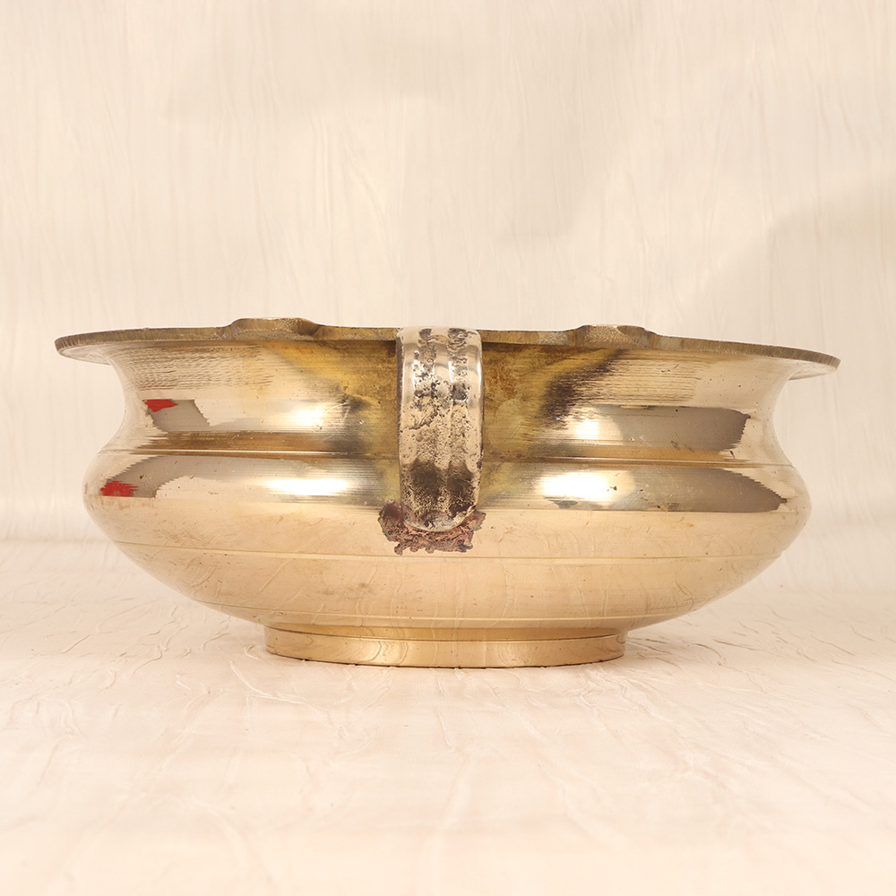 Unlock the captivating essence of South Indian art with our exquisite brass urli. This stunning piece, crafted with meticulous attention to detail, emanates a warm, golden glow that will effortlessly elevate the ambiance of any room. Infuse your living space with the rich cultural heritage of South India. This brass urli is more than just a decorative accent - it's a work of art that tells a story of centuries-old craftsmanship. Place it on a mantel, side table, or shelf, and let its timeless beauty captivate all who behold it. Whether you're a collector of Indian art, a lover of unique home decor, or simply seeking to add a touch of elegance to your surroundings, this brass urli is the perfect addition. Elevate your space and immerse yourself in the timeless allure of South Indian artistry.