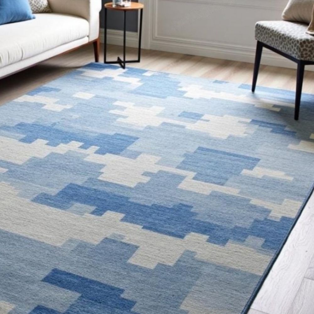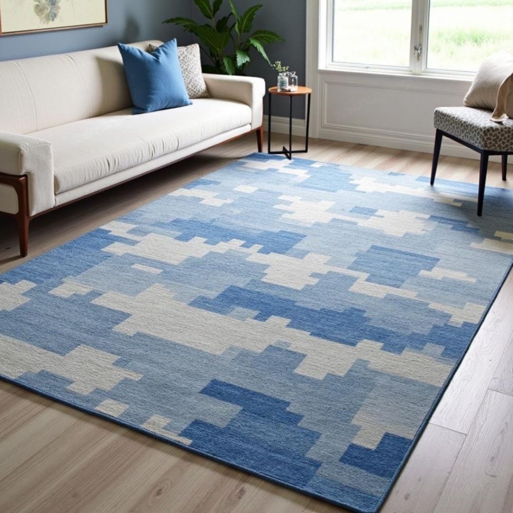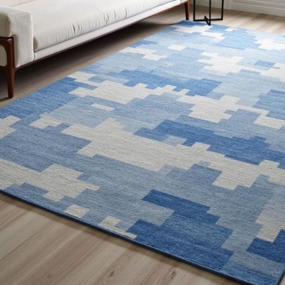 Modern Hand-Knotted Wool Rug Pixel Blue Gradient Design Made in Bhadohi | Handcrafted by Skilled Artisans Bring a refreshing modern touch to your space with this stunning handmade wool rug featuring a contemporary pixelated gradient pattern in calming tones of sky blue, denim blue, and ivory. Its abstract design is perfect for modern, minimalist, or Scandinavian-inspired interiors. Product Details: Design: Pixel-inspired gradient pattern Color: Shades of sky blue, denim blue, and ivory Material: 100% Premium Wool Technique: Hand-Knotted by skilled artisans Made In: Bhadohi, India World-renowned rug-making hub Processing Time: 45 weeks (each piece made to order) Available Sizes: 4x6 feet 5x8 feet 6x9 feet 8x10 feet 9x12 feet Need a custom size or color scheme? We accept custom design orders! Why You'll Love It: Soft and durable perfect for high-traffic areas like living rooms and bedrooms Handmade with precision and care Elegant yet modern aesthetic Natural wool provides warmth and sound insulation Care Instructions: Vacuum regularly without the beater bar Spot clean with mild detergent Professional cleaning recommended for deep stains Message us for any custom size, design, or bulk orders. As it Appears Pack of One Piece.