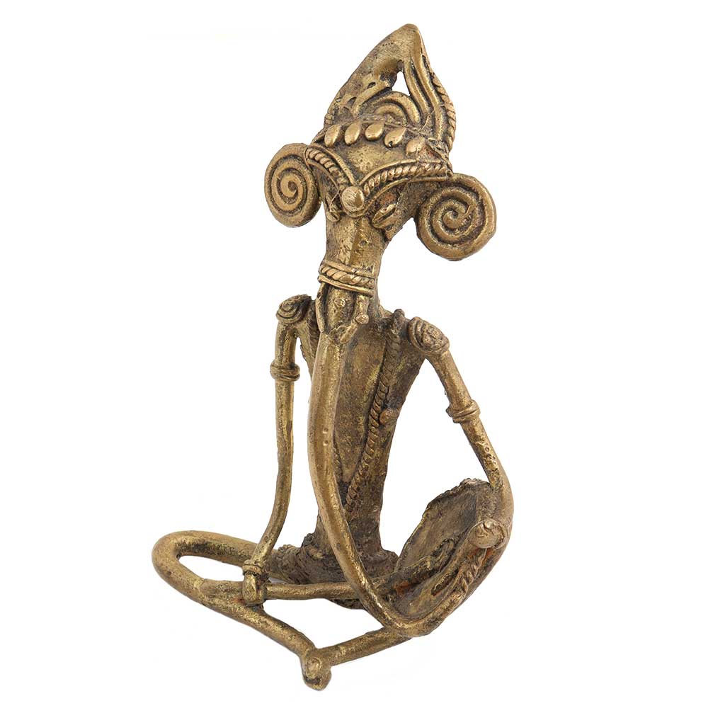 Handmade brass tribal Ganesha sitting made using lost wax process. It is made by a thin brass wire and twisted so as to give it the shape of lord ganesha. This ganesha beautiful figurine can be used for gifting as a blessing, worshipping or for decoration.